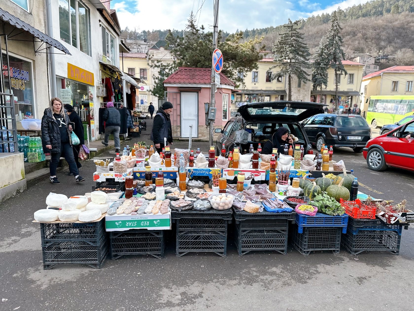 ボルジョミ駅前のバザールは、中心地のバザールと比較しても商品も少し安いのですが、中心地から歩いて約1時間はかかります。(たくさんの野菜を購入してから歩いて帰るには少し大変……)