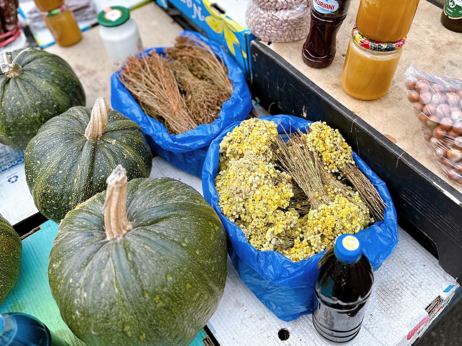 ジョージアの東部に住む友人がボルジョミに来た際、バザールで売ってるお野菜が少し違って面白い!