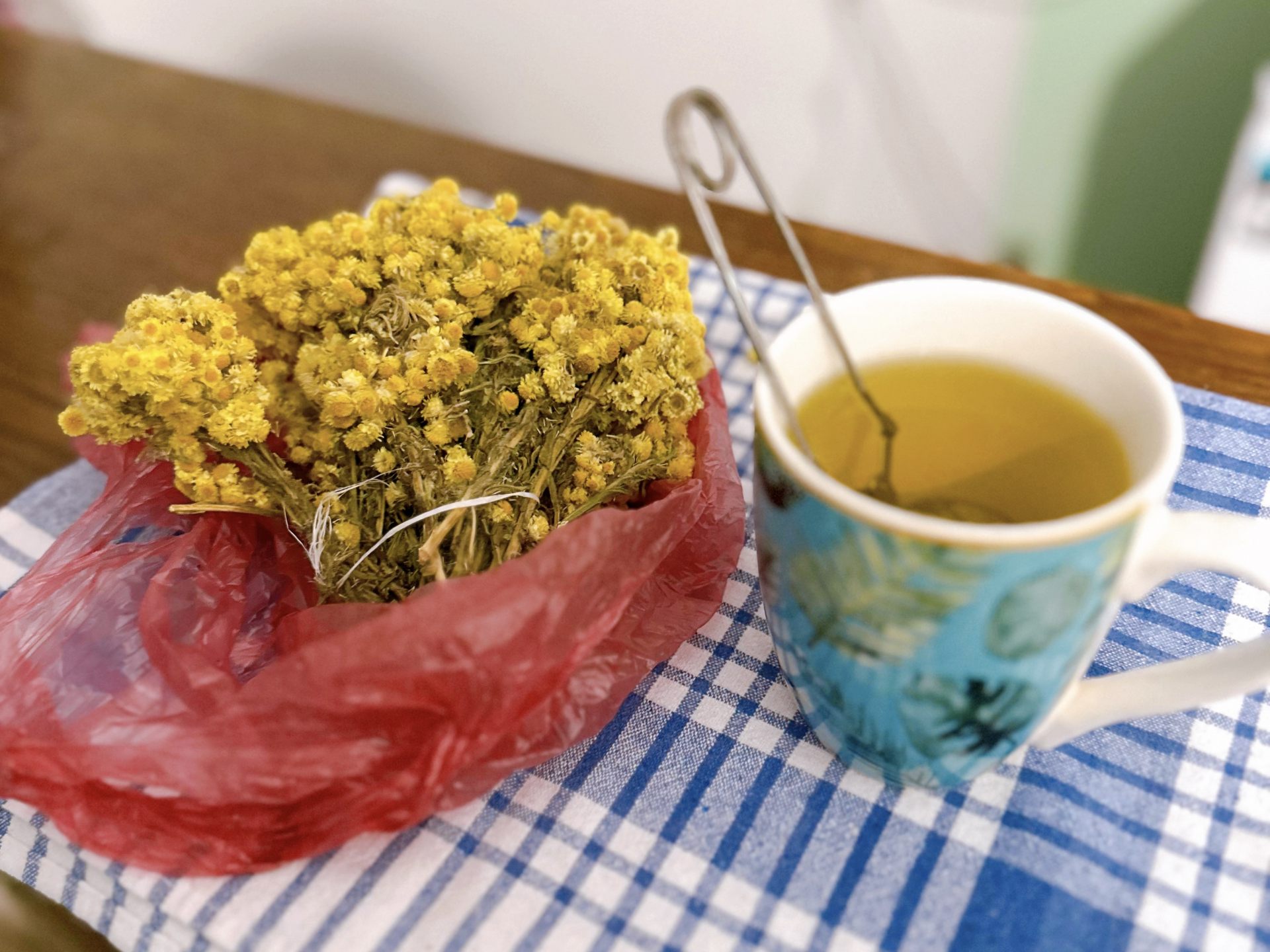そのハーブは、”ヘリクリサム”(ジョージア語ではნეგო:nego)、もとは地中海原産のキク科の植物で、山の中では、岩場などの、植物が育ちにくそうな場所に生えているため、通称:不死の花と呼ばれています。
