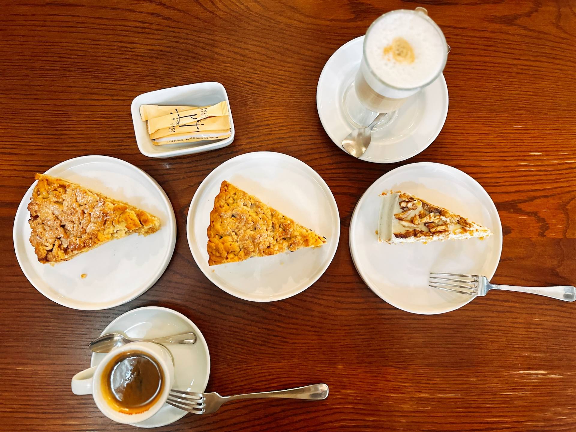 ケーキはチーズケーキやアップルタルト、チョコレートケーキ、キャロットケーキ、ティラミスなどなど、季節やまたその日によって並ぶケーキは異なりますが、どれもとってもおいしいです。