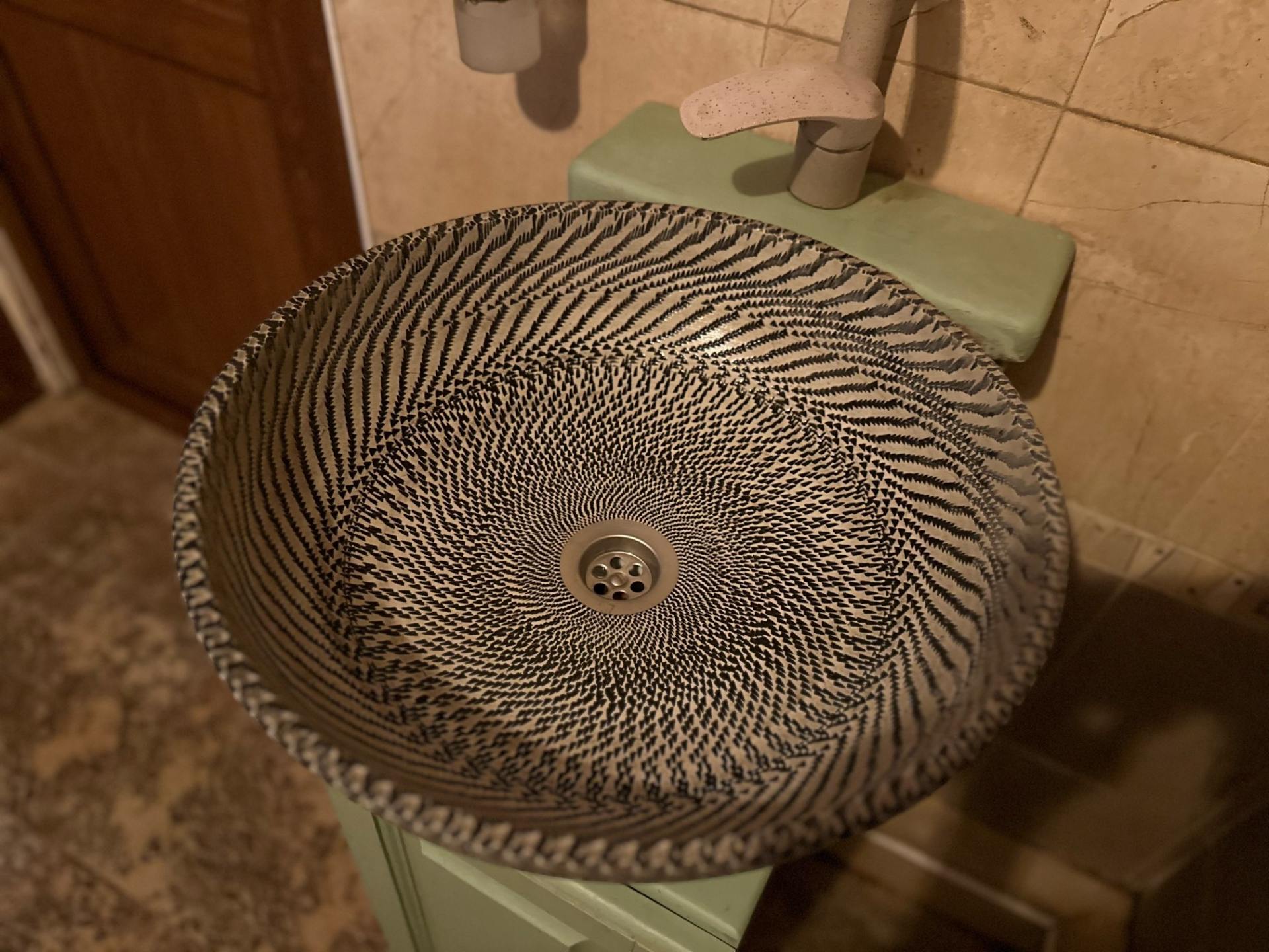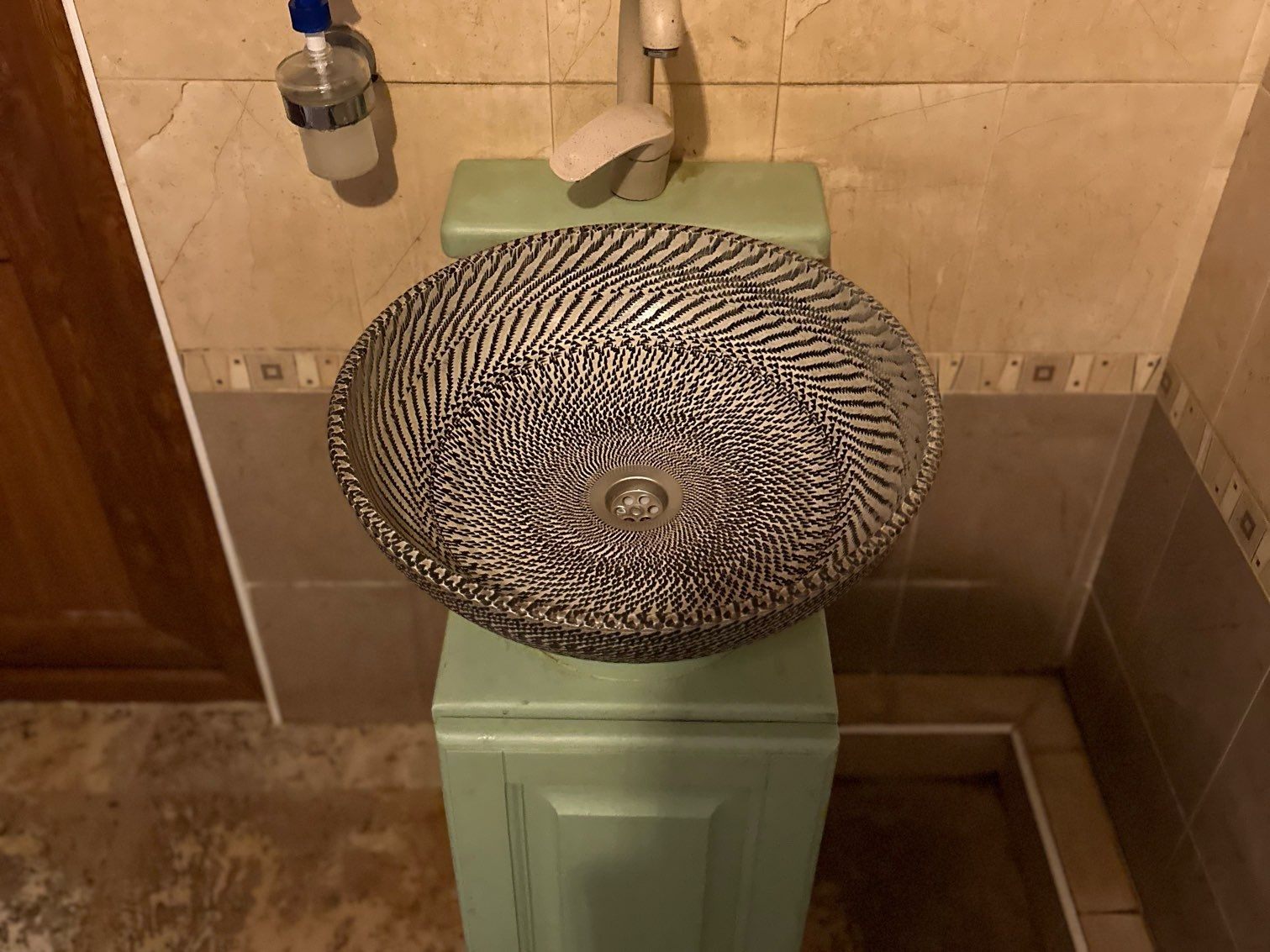手洗い場に向かうと、流し台がなんと、おしゃれなカフェでよくある焼き物のお皿だったのです。