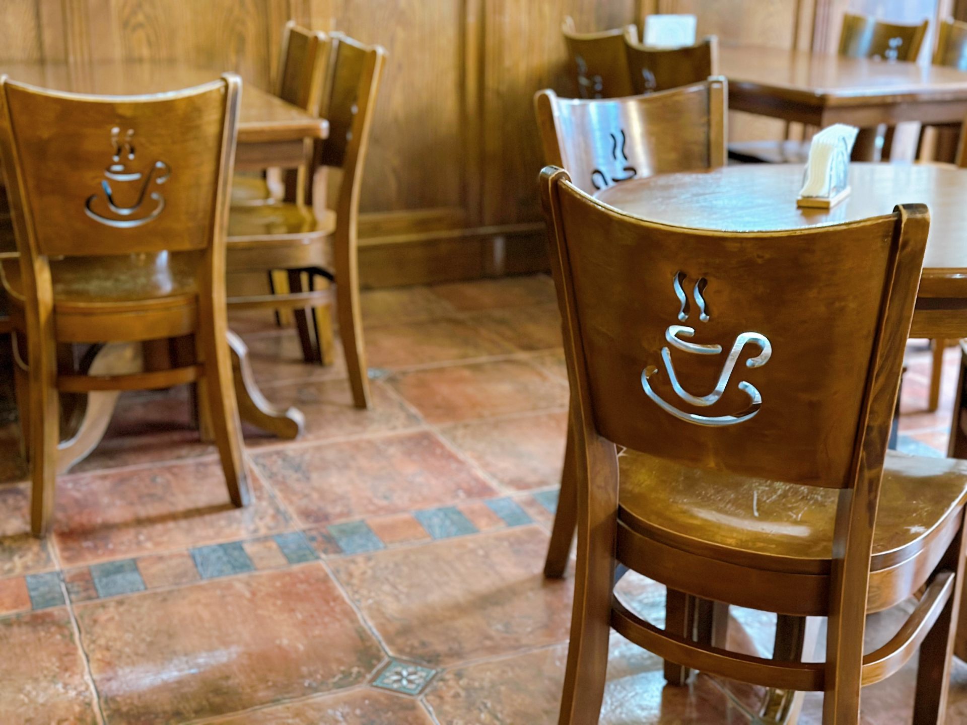 また店内に入ると、椅子にもコーヒーのデザインが施されており、細かなところまでデザインがかわいらしいカフェになっています。