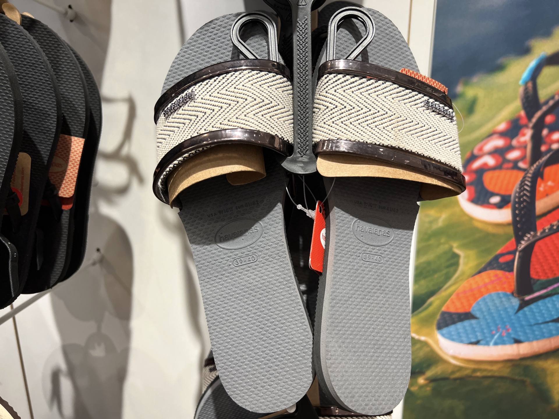 日系移民の多いブラジルでは、日本の影響をあちこちで見受けられるのですが、ハワイアナスのビーチサンダルも、デザインのもとになったのは、なんと日本のわら草履です。そして、ビーチサンダルの表面には、お米の形がインスピレーションとなった楕円形のエンボス加工。ハワイアナスは、ハワイへの想いと日本の伝統に根付いたサンダルブランドです。