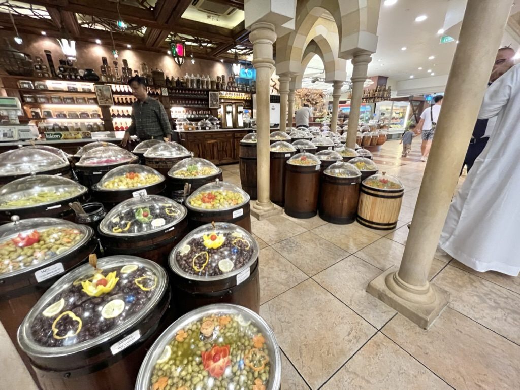 「ワフィ・グルメ」では店内がスークのようになっていて、色とりどりの野菜を使った珍しいケバブがずらっと並んでいます。気に入ったものがあれば焼きたてをテーブルで食べることも。また、デパ地下のようなショーケースの中には様々な種類のレバノン料理の前菜が並び、こちらも好きなものを選んでいただけます。テイクアウトにして夕飯にするのもいいですね。