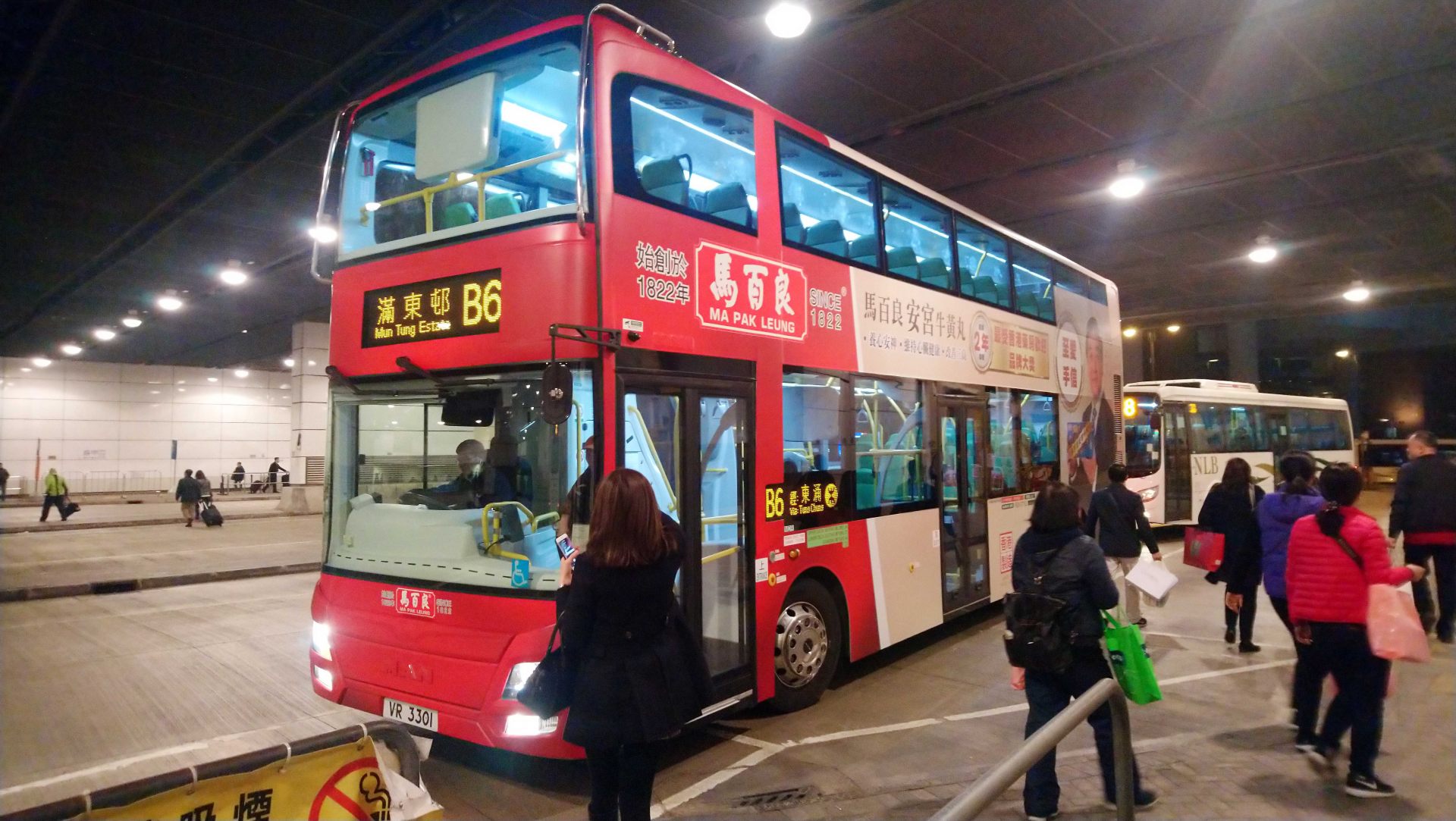 香港側でも通常の税関手続きを行います。それが終わり建物の外に出ると、バスターミナルがあります。そこから各方面に直接行くことが可能です。または、そこから最寄りの地下鉄駅である東涌駅(Tung Chung Station)に向かい、そこから目的地へというのであればB6という路線の場所に行ってください。料金は一律9.1香港ドルで終着駅が東涌駅となります。