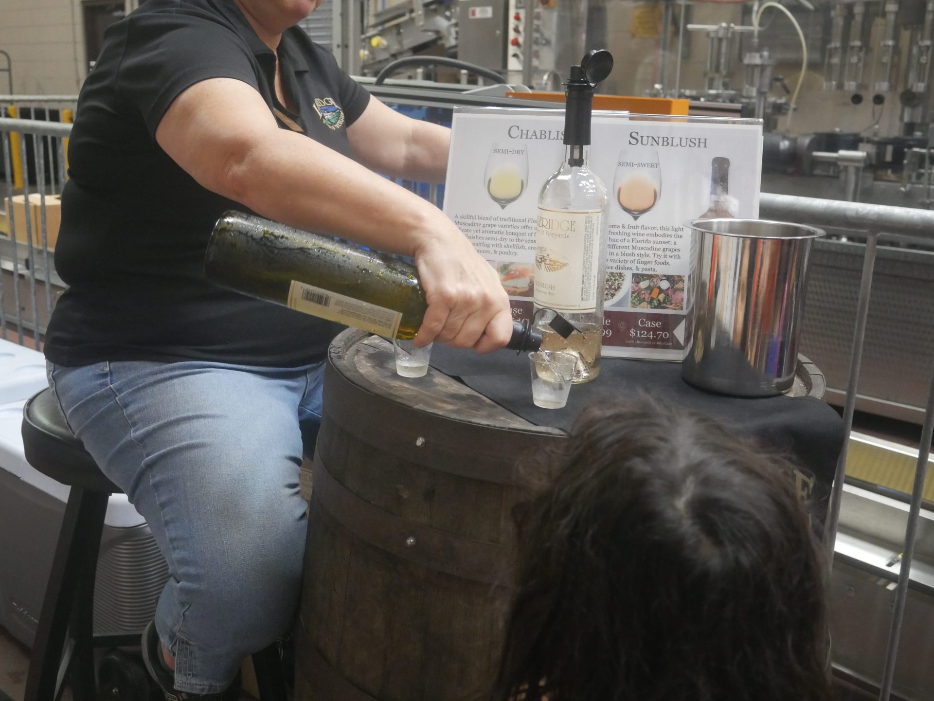 前回訪問したのは平日で、最初ワイナリーについての15分くらいの上映があり、案内の人がひとりでそれぞれのワインを説明しながらテーブルで振る舞ういうスタイルでしたが、今回は休日で駐車場はいっぱい! 上映なくそのままテイスティングしたのち、コップを持って歩きながら各ワインを試飲していく、というスタイルでした。