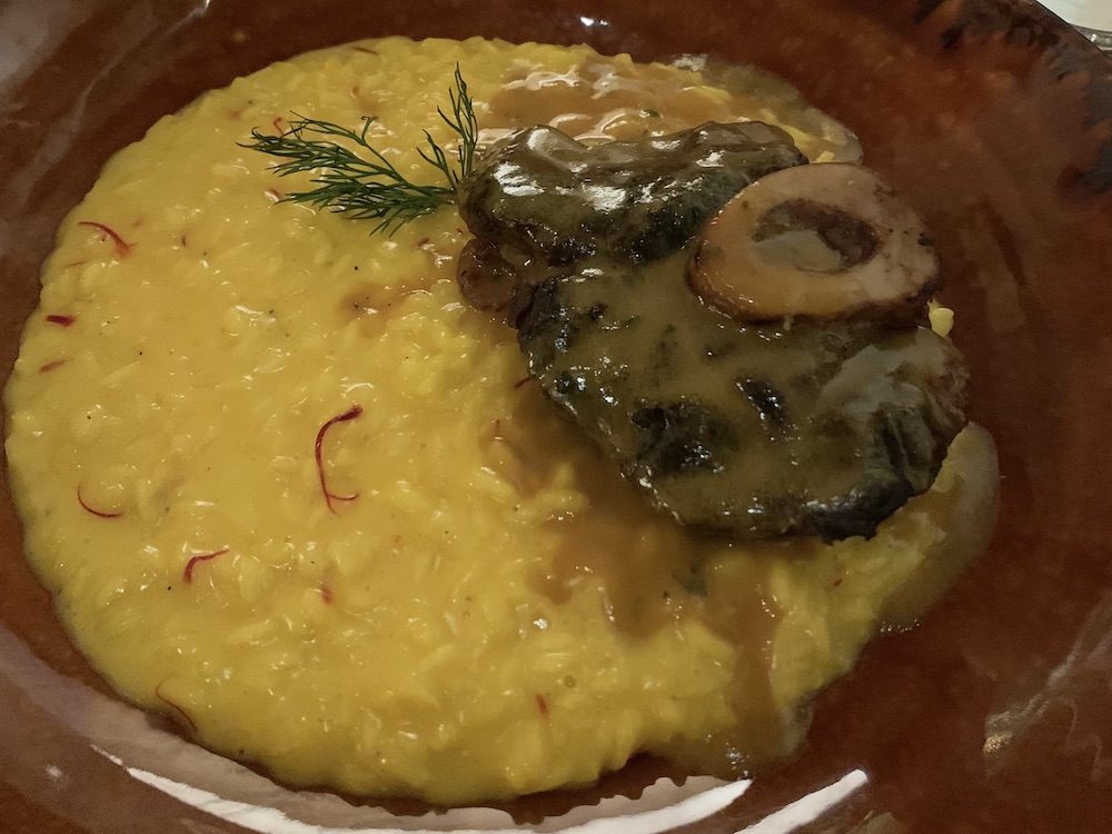 おすすめは、「オッソブーコ・コン・リゾット・アッラ・ミラネーゼ(Ossobuco con Risotto alla Milanese)」。