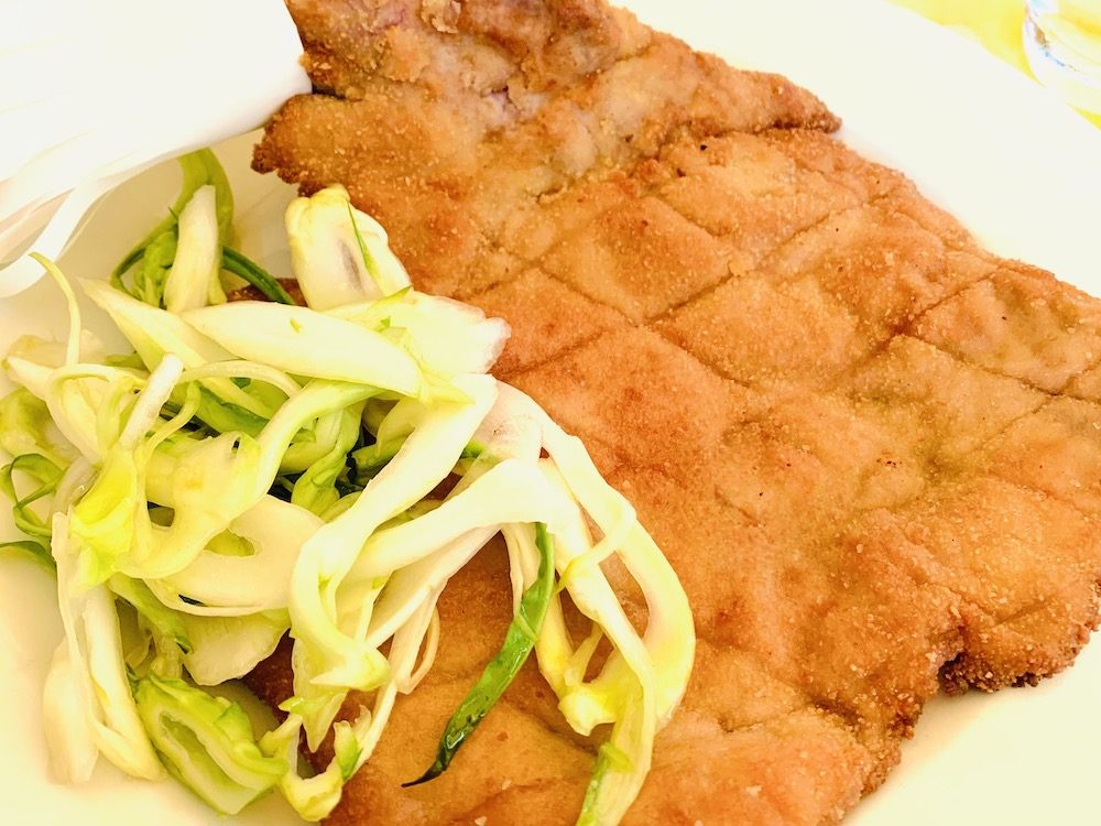 ここでのおすすめは、「コトレッタ・ディ・ヴィッテロ・アッラ・ミラネーゼ(Cotoletta di vittelo alla milanese)」。イタリア全体でも有名な仔牛の骨つきカツレツです。