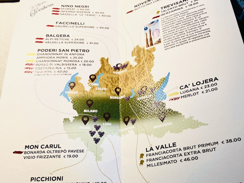 ワインメニューは、ロンバルディア州のマップ付きでワインを紹介。