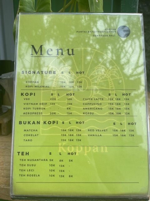 インドネシアは珈琲の生産地ですが、珈琲を飲むとなると、日本よりややリーズナブルか、価格でいうと日本より高価なところも。