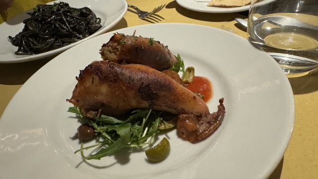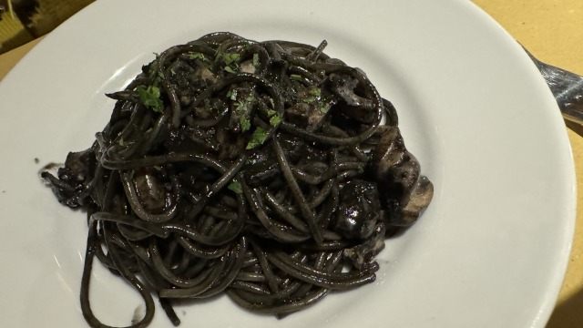 初日は地元の人が通う大衆的な食堂でパスタ、夜は友人おすすめのステキなオステリア、
