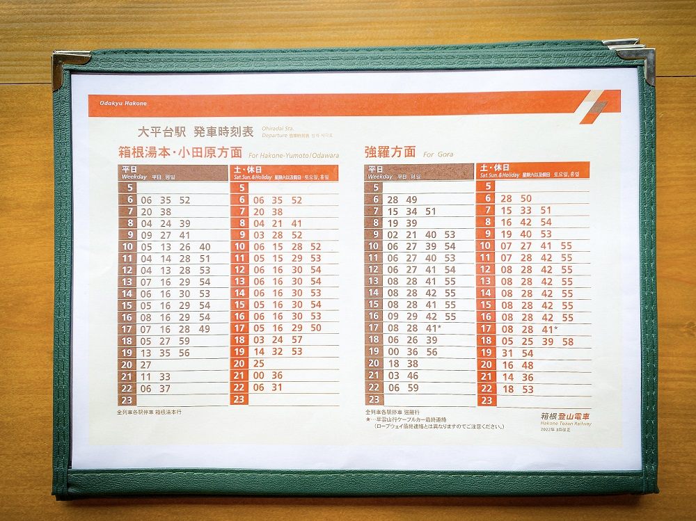 せっかく来たなら「スイッチバックの瞬間は見逃すまい」とソワソワしてしまいそうですが、メニュー表内に電車の時刻表が記載されているので、食事に夢中で「うっかり見逃してしまった」なんてことにならないので安心。