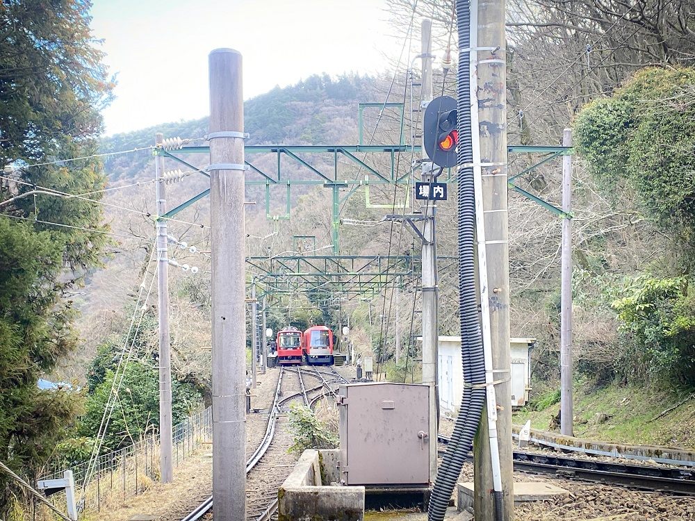 箱根登山電車は、箱根湯本から強羅までの8.9kmを約40分かけて山間を走る山岳鉄道。急勾配を登るため、スイッチバック方式をとり入れて、進行方向を変えながらジグザグに登って行くのが特徴的です。