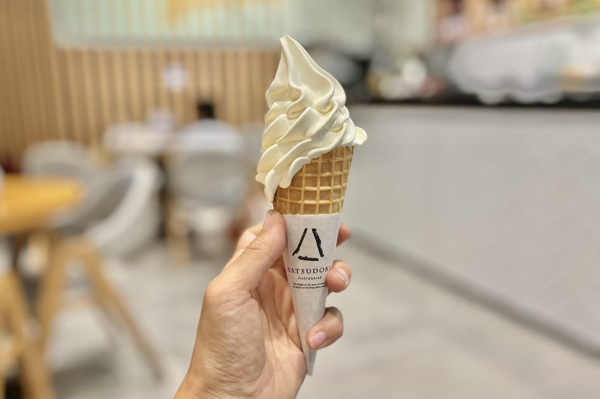 「ヤツドキ」のカフェ店内では、八ヶ岳の牛乳を贅沢に使用した濃厚ソフトクリームもいただけます。一口食べると口の中いっぱいに広がるミルクのコクと旨みが堪りません。また、ショーケースの中には日本のカップアイスが充実していて、京都宇治抹茶を使用した抹茶アイスは、さっぱりとした苦味が日本を思い出させてくれる美味しさですよ。