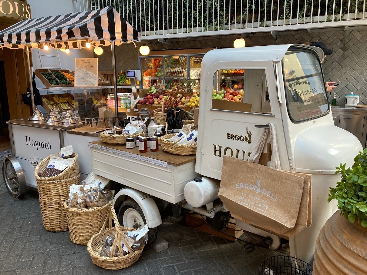場所はシンタグマ駅から徒歩5分ほどにある、 ミトロポレオス通り(Mitropoleos Street)。2階から上は4つ星ホテルですが、1階は誰でも利用できるデリ・レストランになっています。