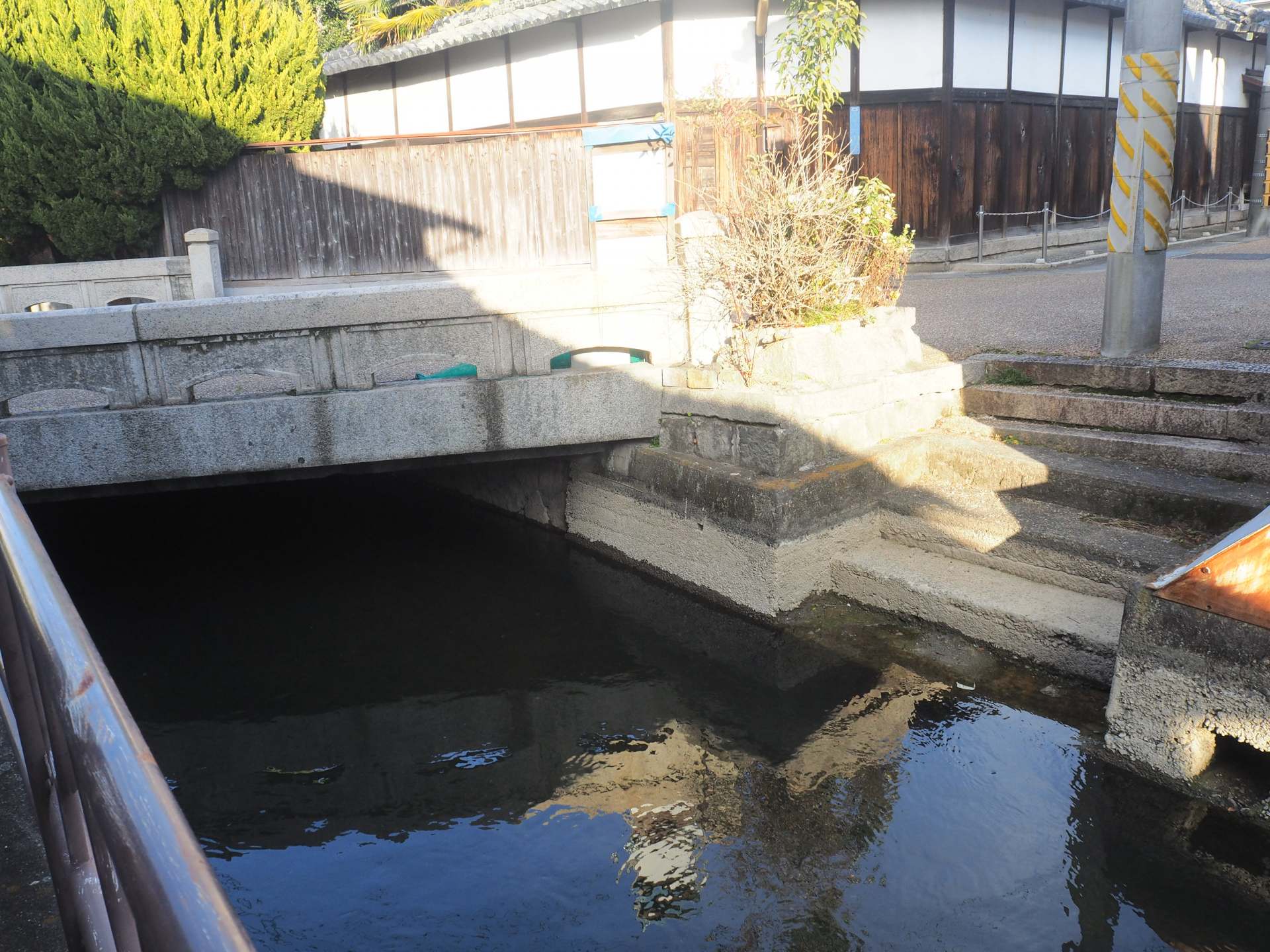 公園の前を流れる西川。用水路に降りるための階段があります。かつての川の水は飲めるくらいきれいだったといいます。灌漑用水のためだけではなく、川の水で洗濯をしたり、手を洗ったり生活になくてはならない水だったと思います。