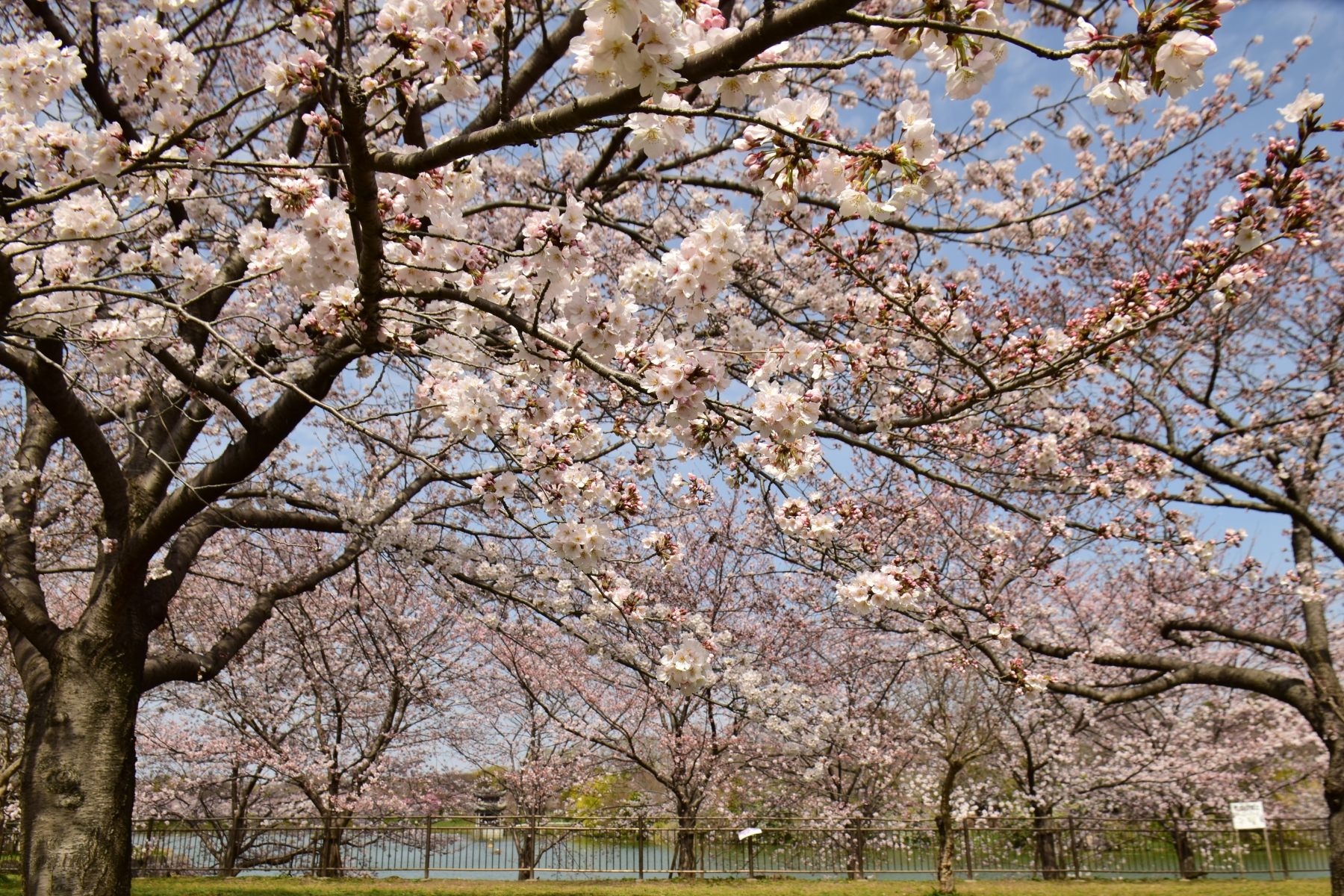 大阪市・鶴見区にある花博記念公園鶴見緑地では、早咲きの桜が満開です。