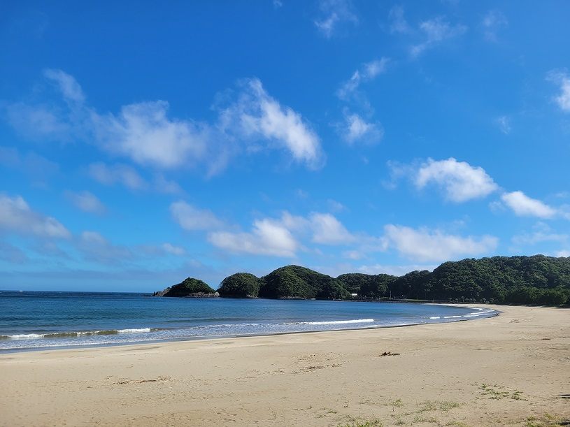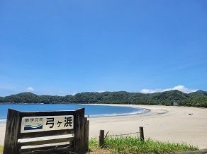 弓ヶ浜海水浴場は名前の通り弓状になっており、端から端までは1.2km。 遠浅で比較的波が穏やかなので海水浴やSUPなどに適してます。 正面から見てもよし! 左側から見てもよし! 右から見てもよし! いつの季節に見ても何時に見ても美しい海水浴です。