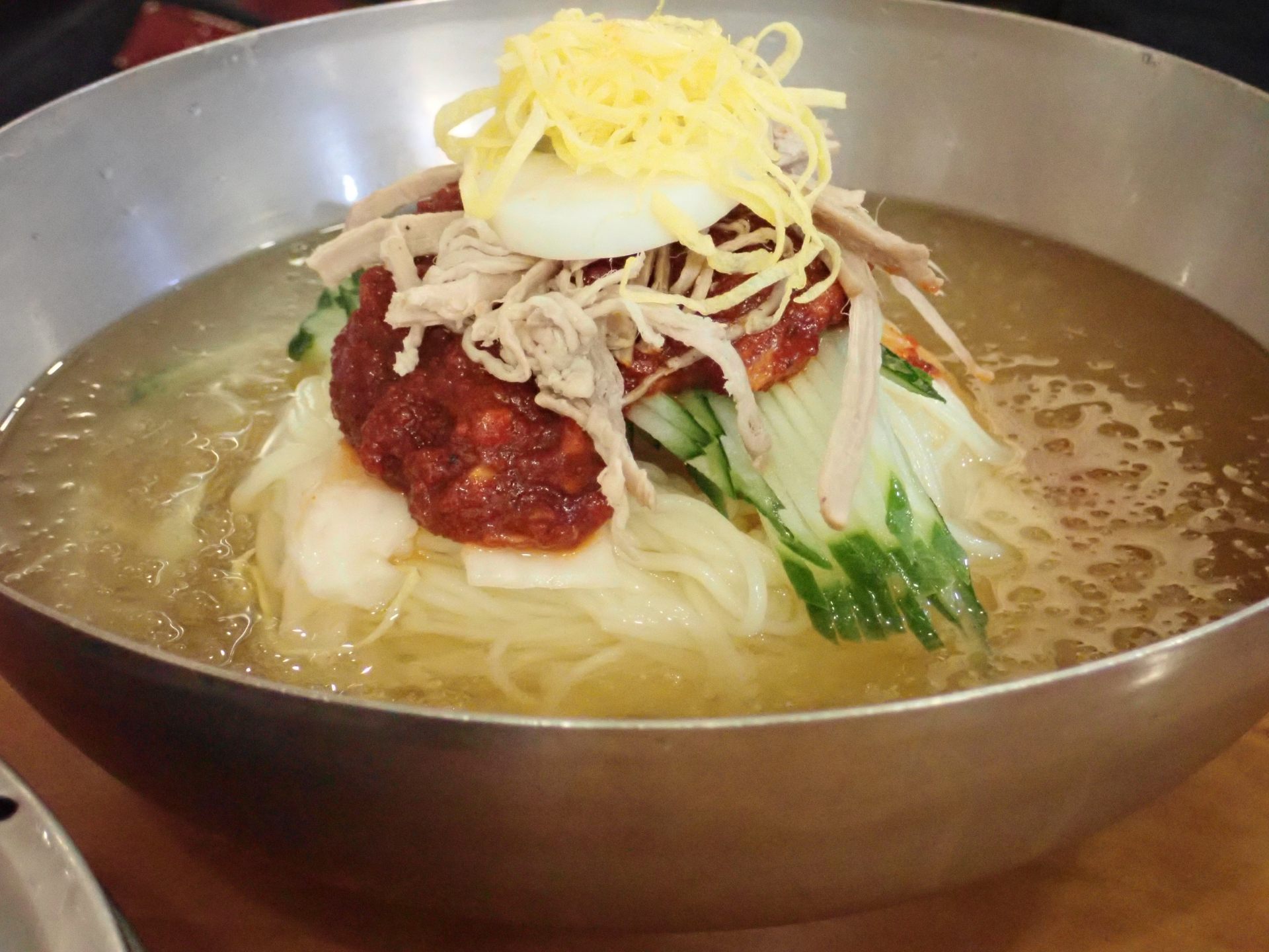 テジクッパと同じくらい釜山を代表する料理です。日本の冷やし中華に似ていて、ツルツルと食べやすい麺です。
