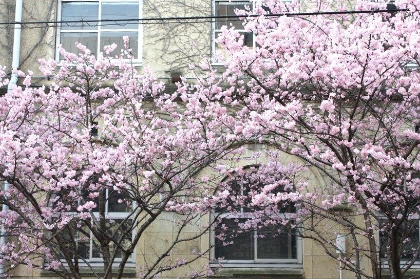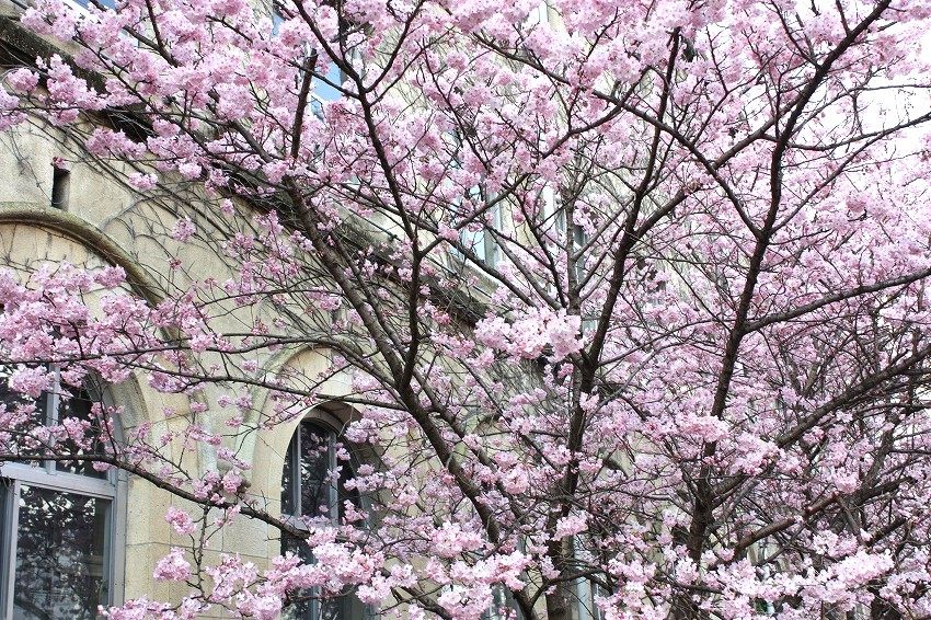 卒業生を送り出す、この時期に咲くように品種改良された桜です。