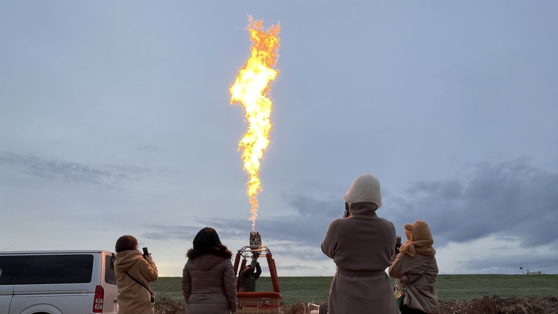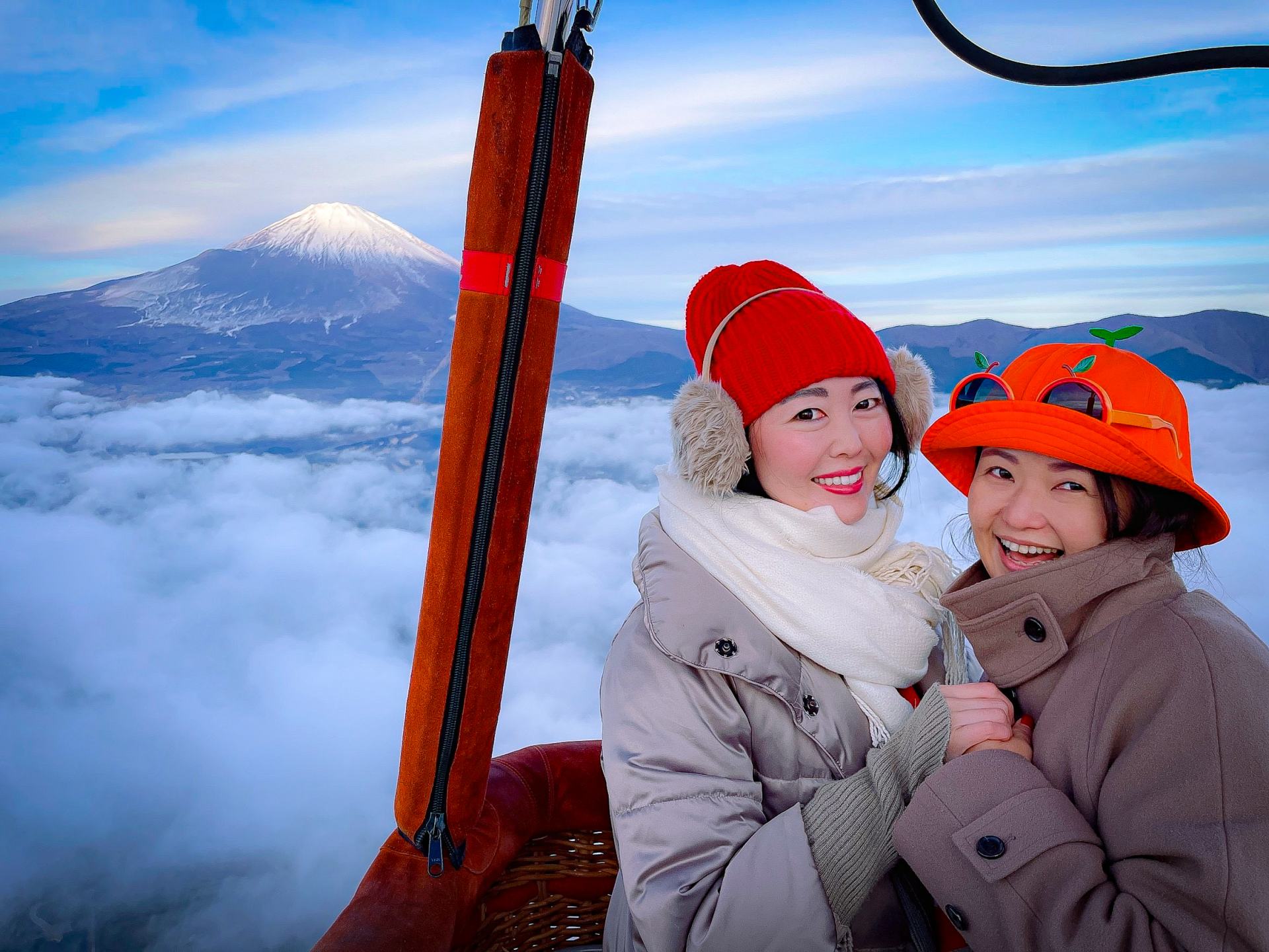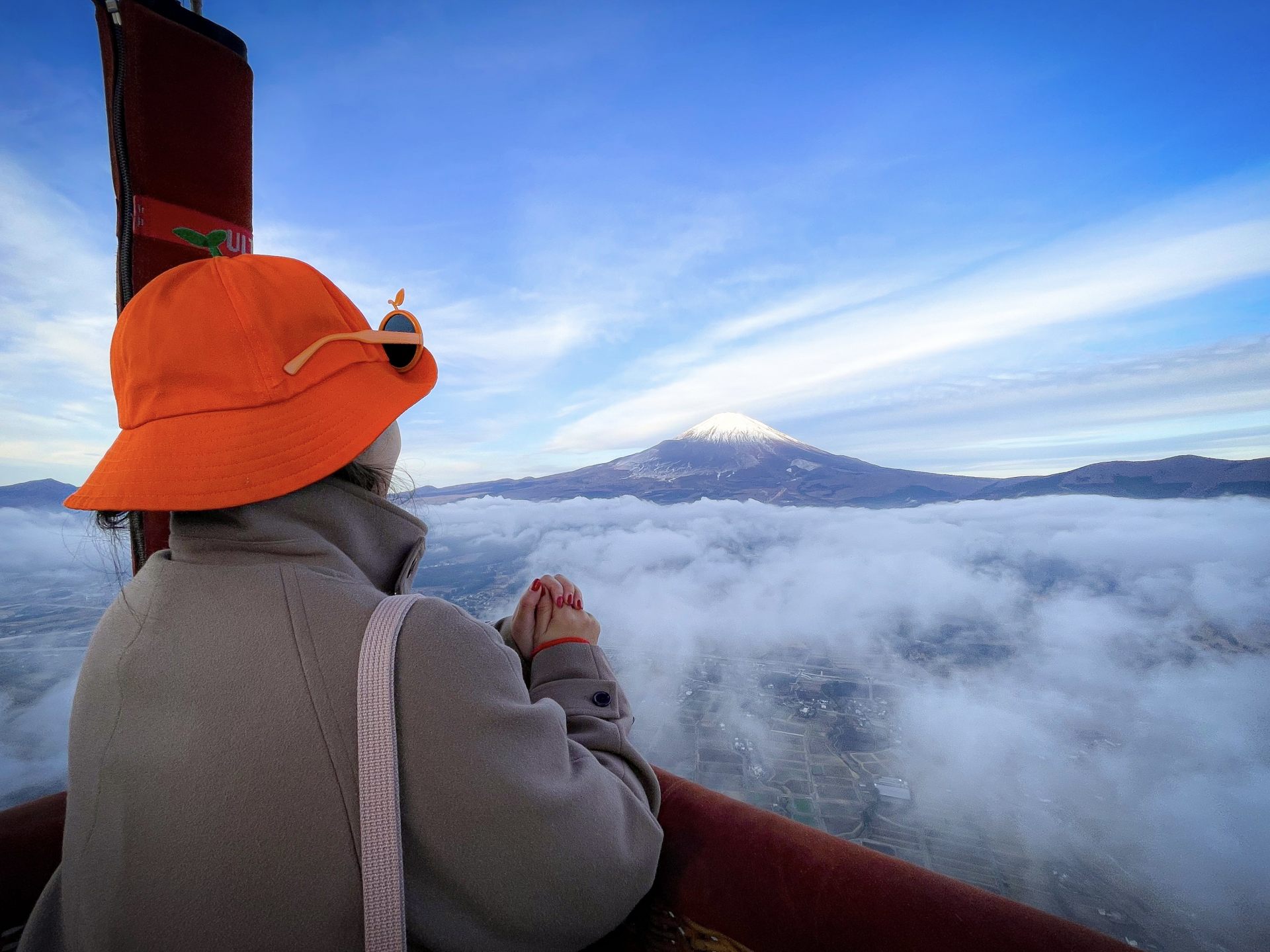 季節限定で楽しめるのは、御殿場での気球フライト。空の上から、息を飲むほど美しい絶景の富士山を楽しめます。早朝の気温は0℃でしたが、フライト中はガスを点けるので、あまり寒さを感じません。