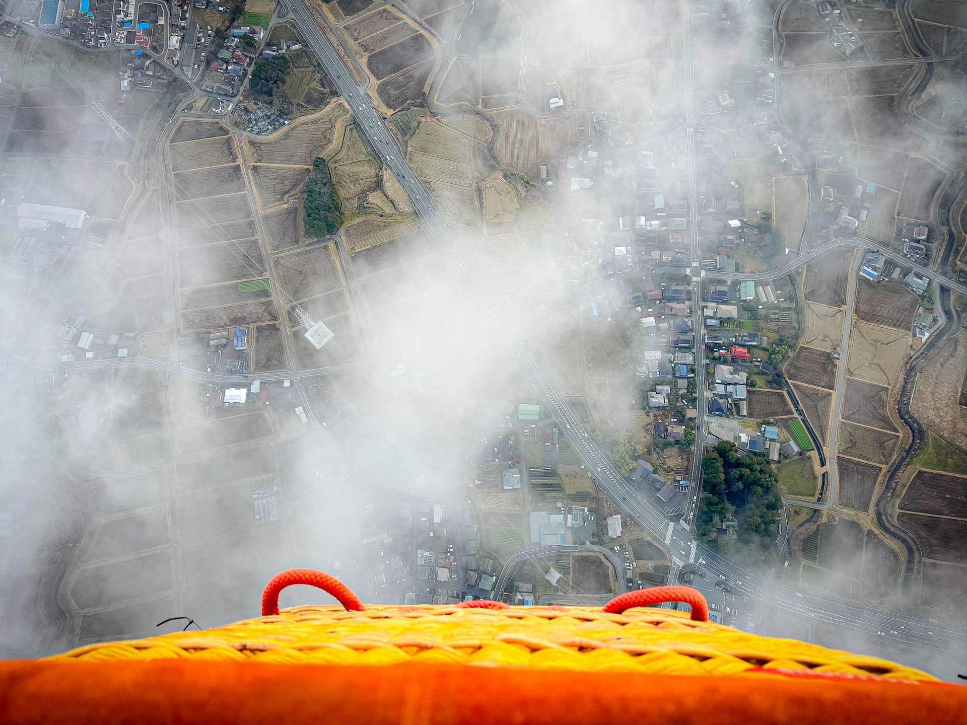 晴天もいいですが、御殿場エリアのおすすめは薄く雲がある日のフライト。私も今回、少し雲がある状態でフライトに挑みました。ゴンドラが地上から離れ、ゆっくり高度を増してゆき、雲の中に入るとドキドキ胸が高鳴ります。