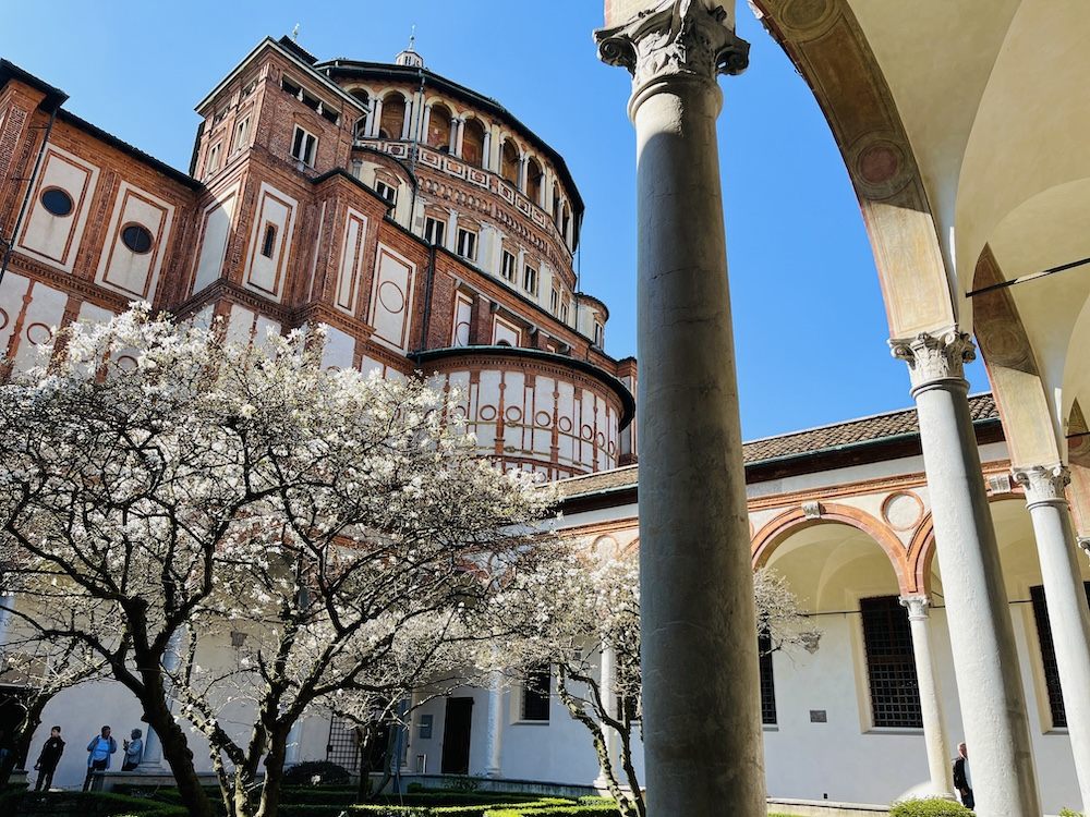 レオナルド・ダ・ヴィンチ「最後の晩餐」の壁画のあるサンタ マリア・デッレ・グラツィエ教会の中庭には、白いマグノリアの木があります。