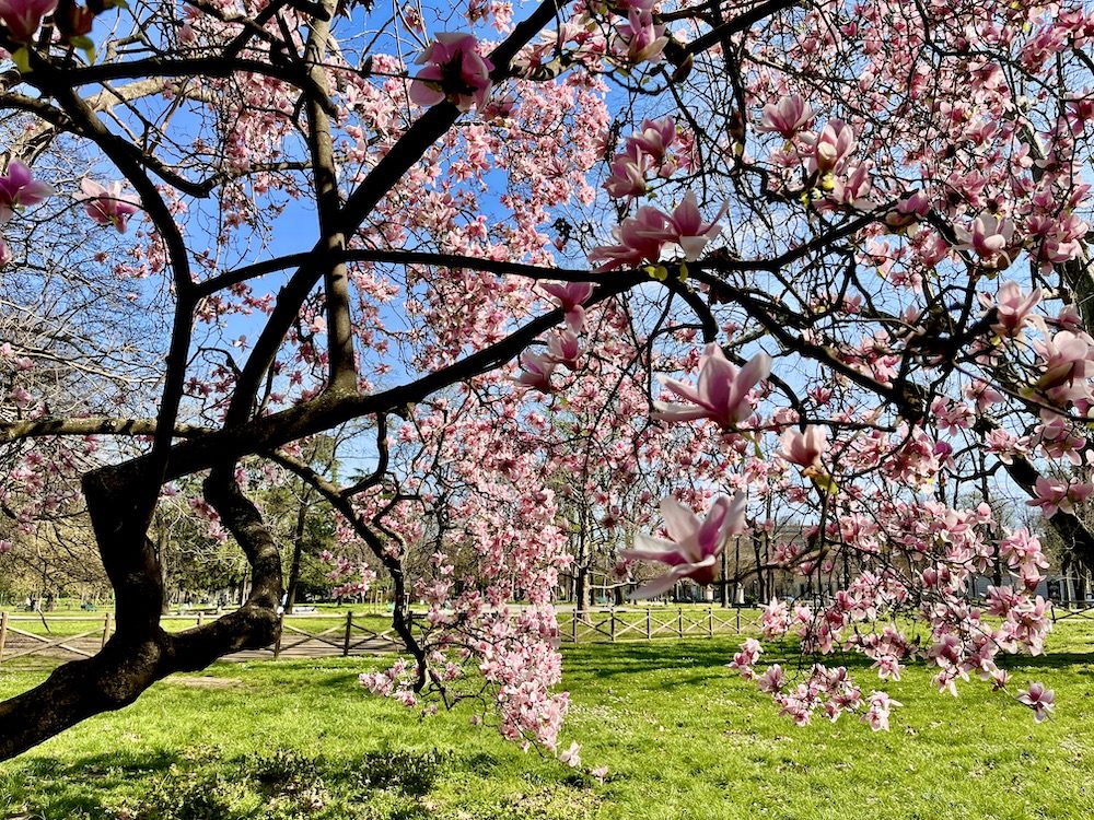 ミラノ大聖堂から歩いて約20分の距離にモンタネッリ公園があります。ミラノの春の真の主役であり、花見の主要な場所です。