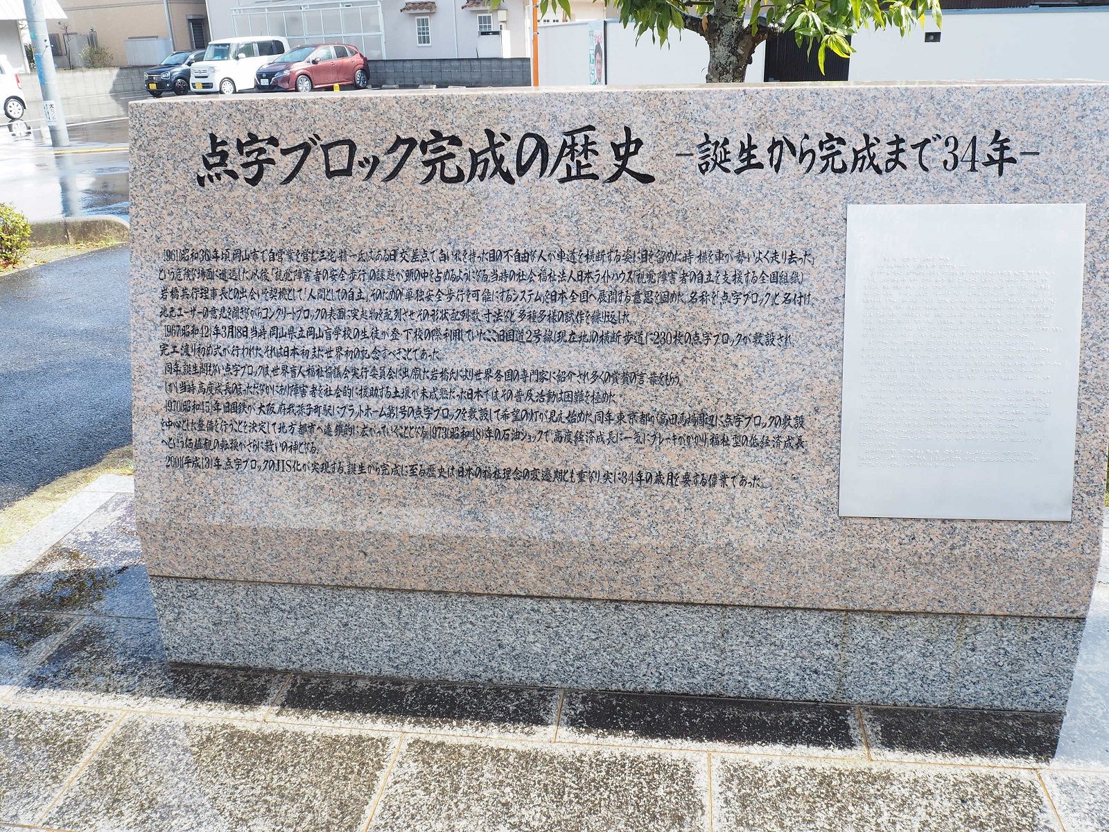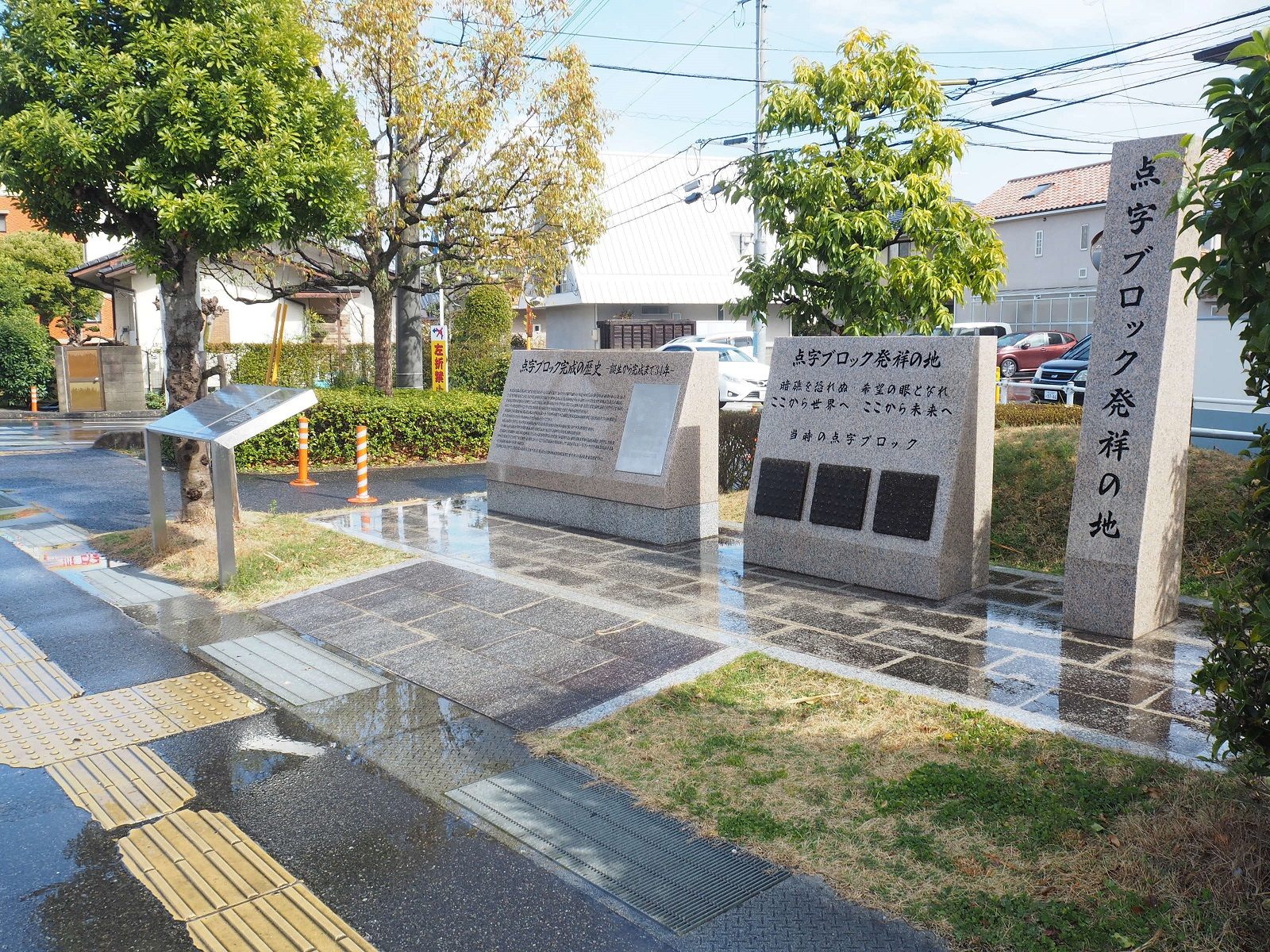 点字ブロックの歴史が刻まれた碑です。碑文に書かれているのは
