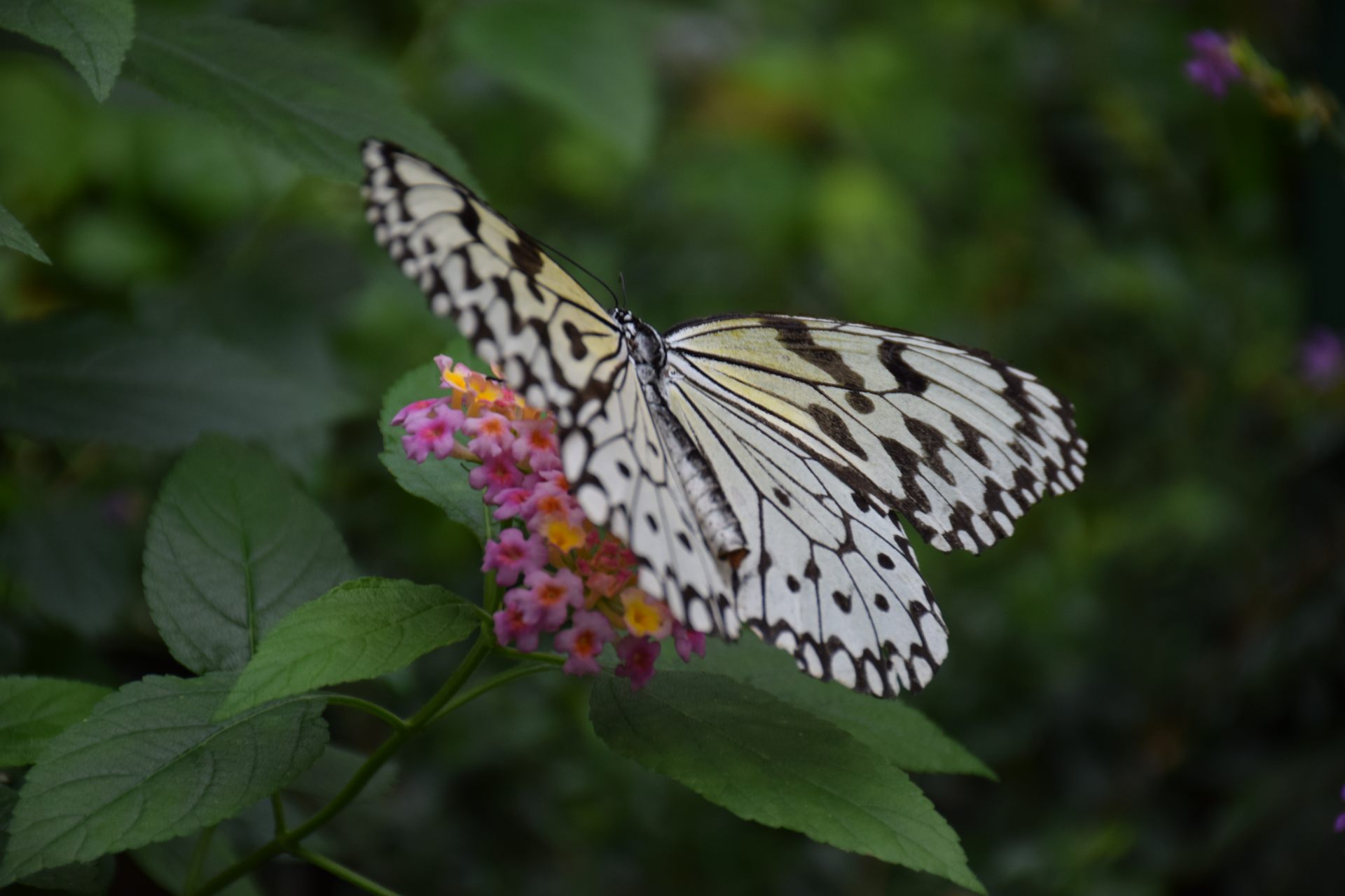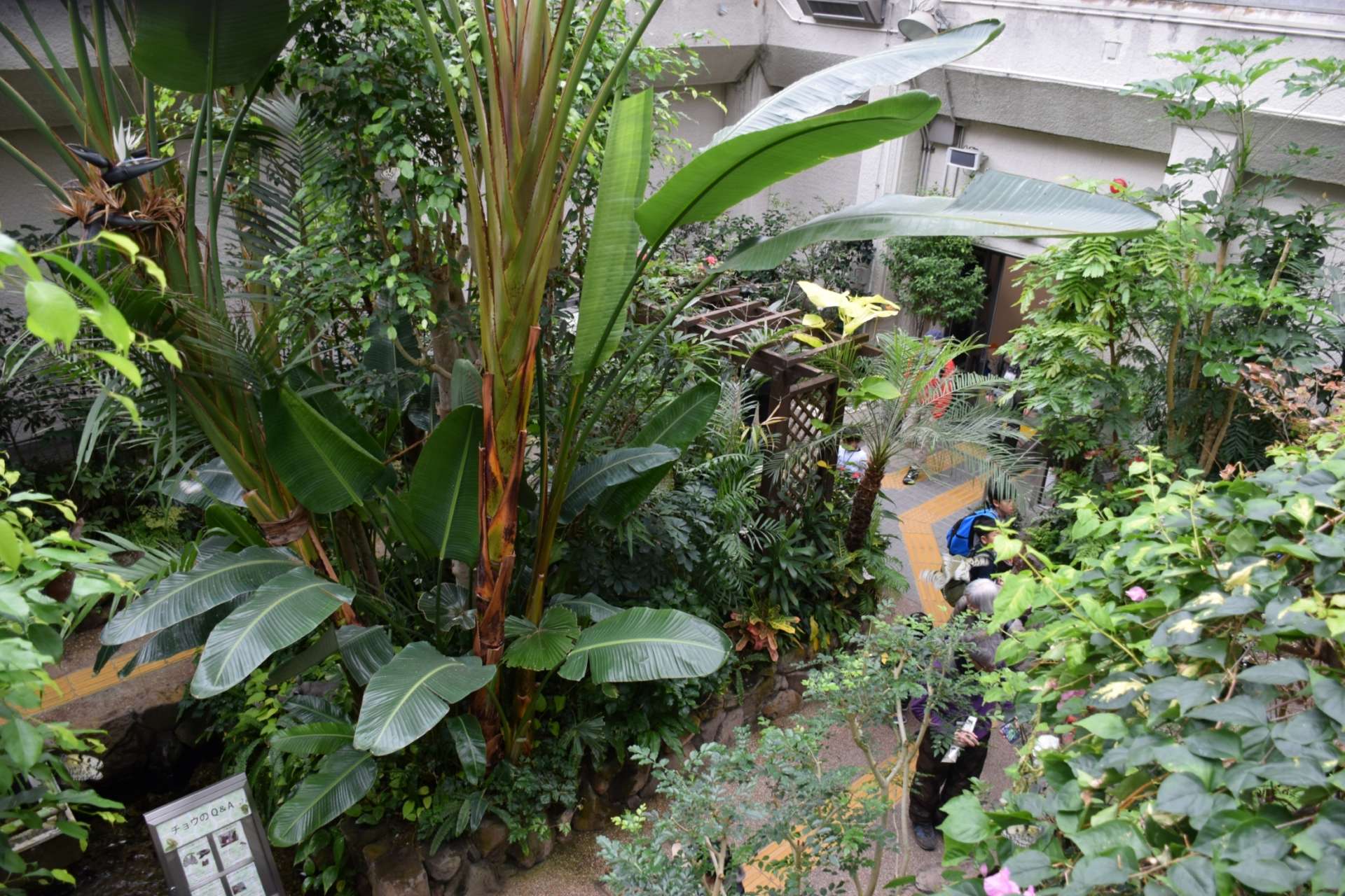 2Fに上がると、飛んでいる蝶を上から見ることができます。