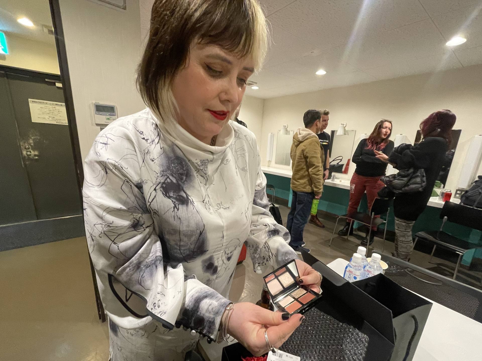 ー 実は今回の来日で、お渡ししたいものがあります。以前大阪の単独公演でお会いした時に、あなたの親友がシュウ ウエムラで働いていたことがあるとお聞きして、前回お渡ししたリップを気に入ってくださいました。そこで新しいメイクアイテムを特別にシュウ ウエムラのPRの方から預かっています!