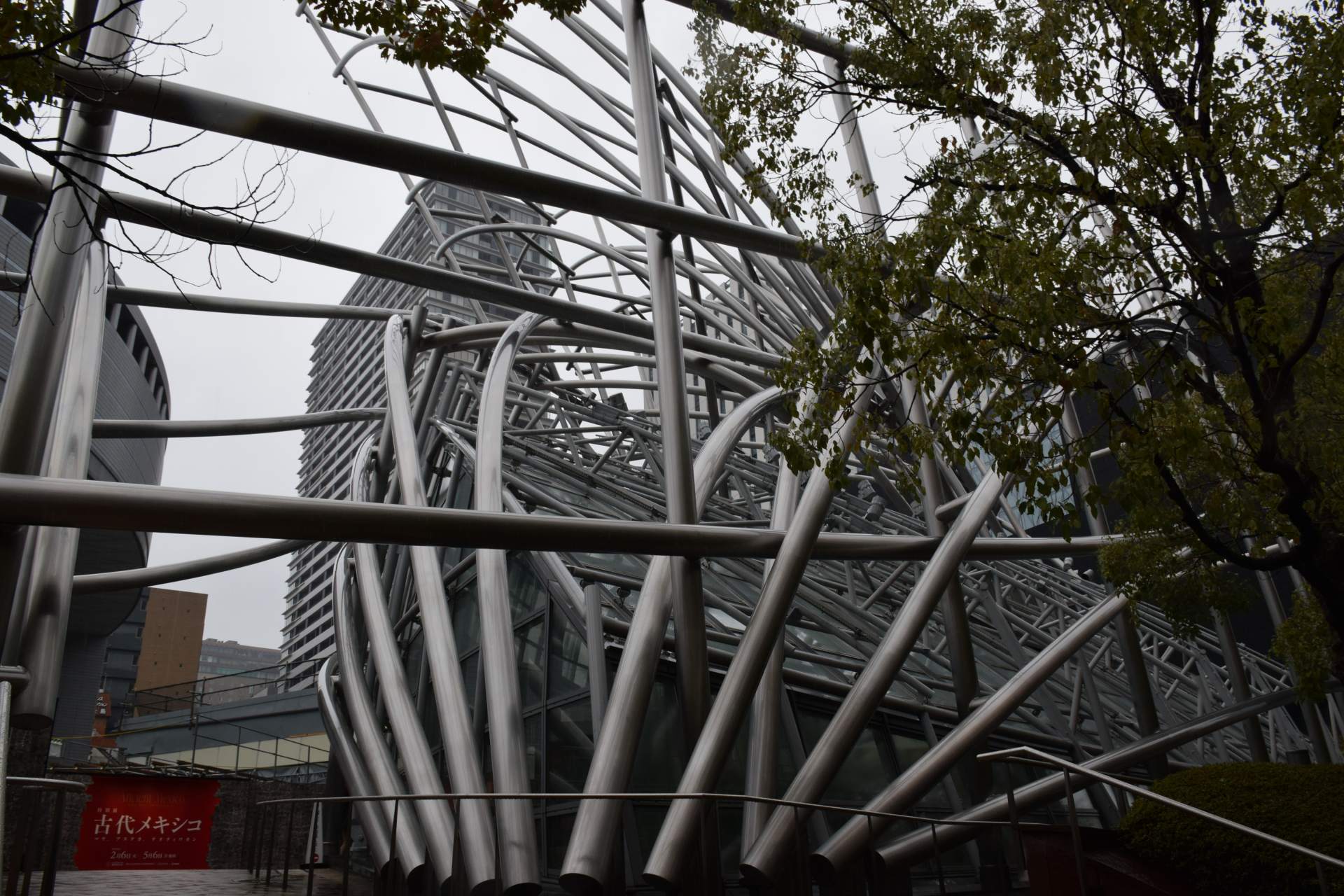 会場となる国立国際美術館は世界でも珍しい「完全地下型」美術館で、鉄パイプが空に伸びたようなユニークな外観の1Fから降り、地下2Fと地下3Fに展示室があります。