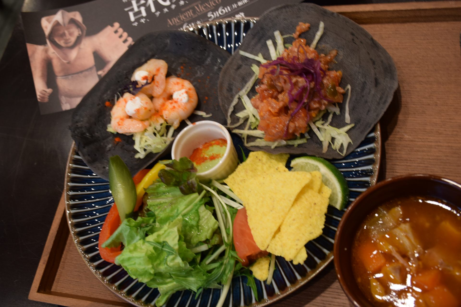 地下1FのCAFE&LOBBY 隠::INでは、特別展「古代メキシコ」会期中に古代メキシコにちなんだメニューを楽しむことができます。