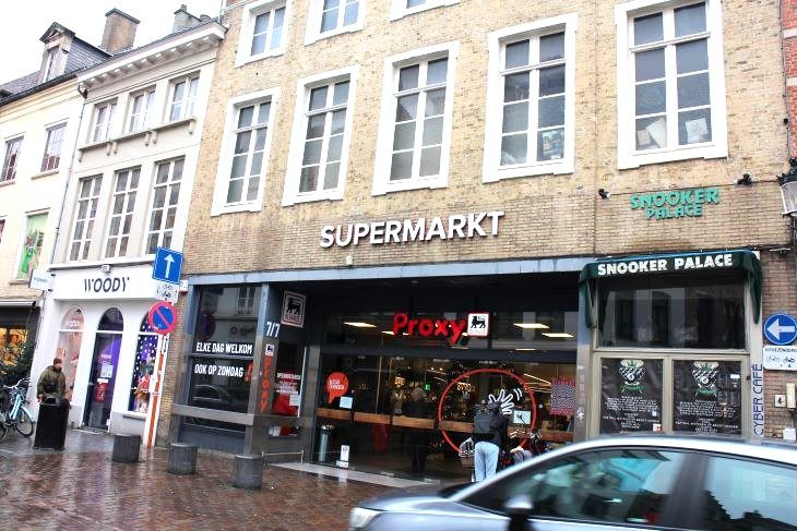 ベルギーのスーパーマーケット DELHAIZE。小規模版の PROXY DELHAIZE がブルージュのマルクト広場の近くにありました。