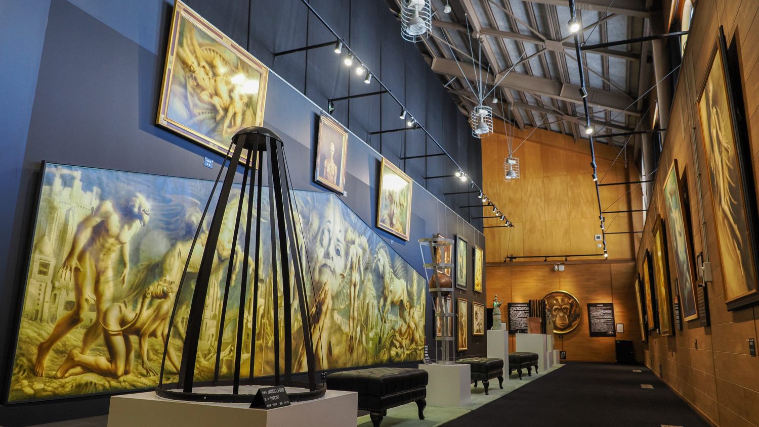 Oneofthelargestoilpaintingsintheworld"TheGrandeToile"byGérardDi-Macciointheexibitionroomwithstaindglasswindows