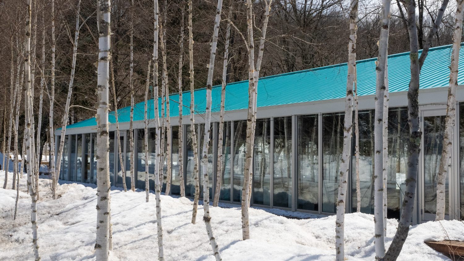 ガラスの美術館の建物は、旧・太陽小学校のプールをリノベーションしたそう。