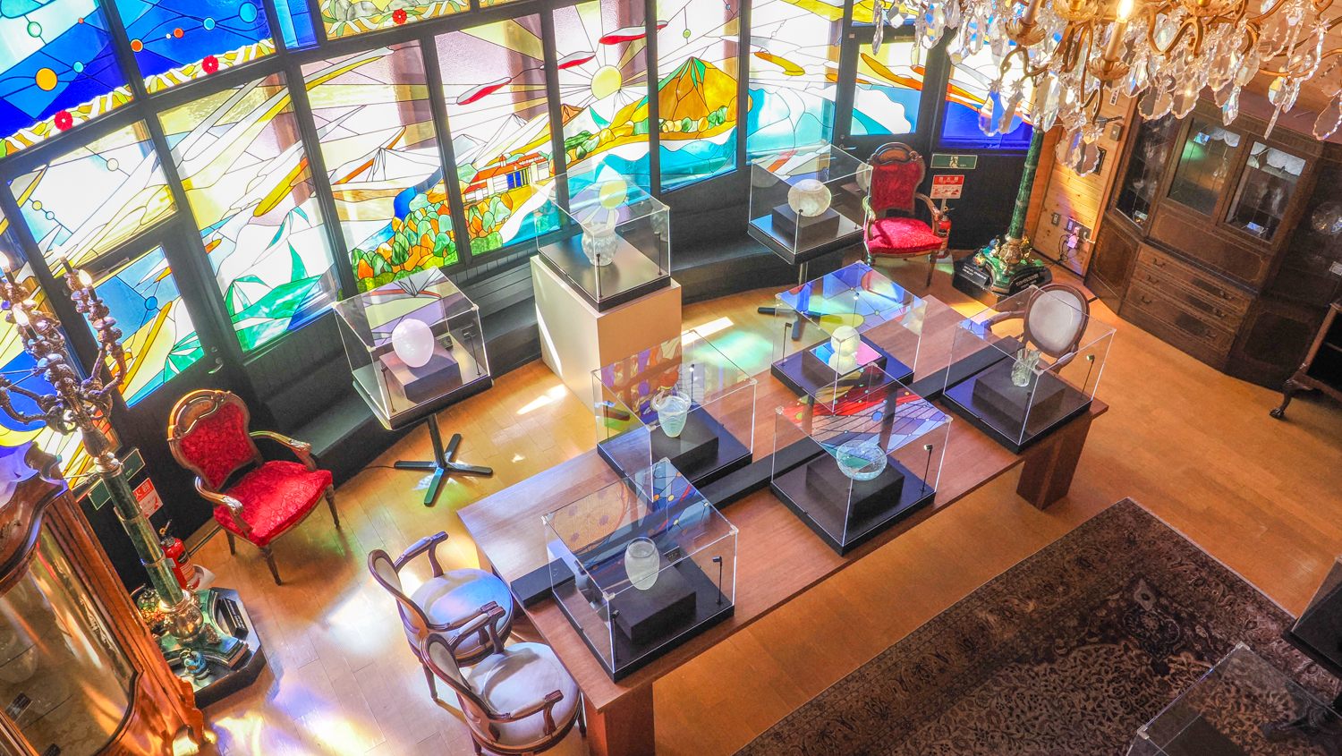 光が燦燦と降り注ぐ美術館は、ガラス工芸品にふさわしい色と透明感のなかで作品を楽しめます。
