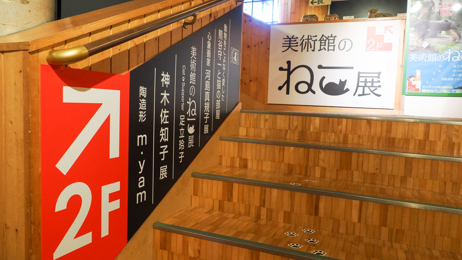 日本人作家作品の展示もあるとのことで、階段のネコの足あとに導かれ、2階へ行ってみると……