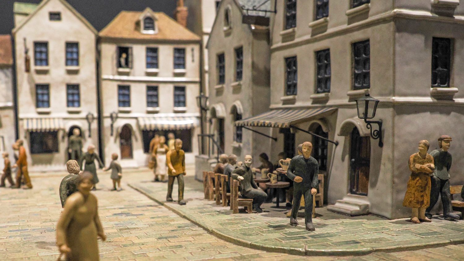 こちらは、1階の展示室にあるヨーロッパの田舎をテーマにしたミニチュア陶芸作品。