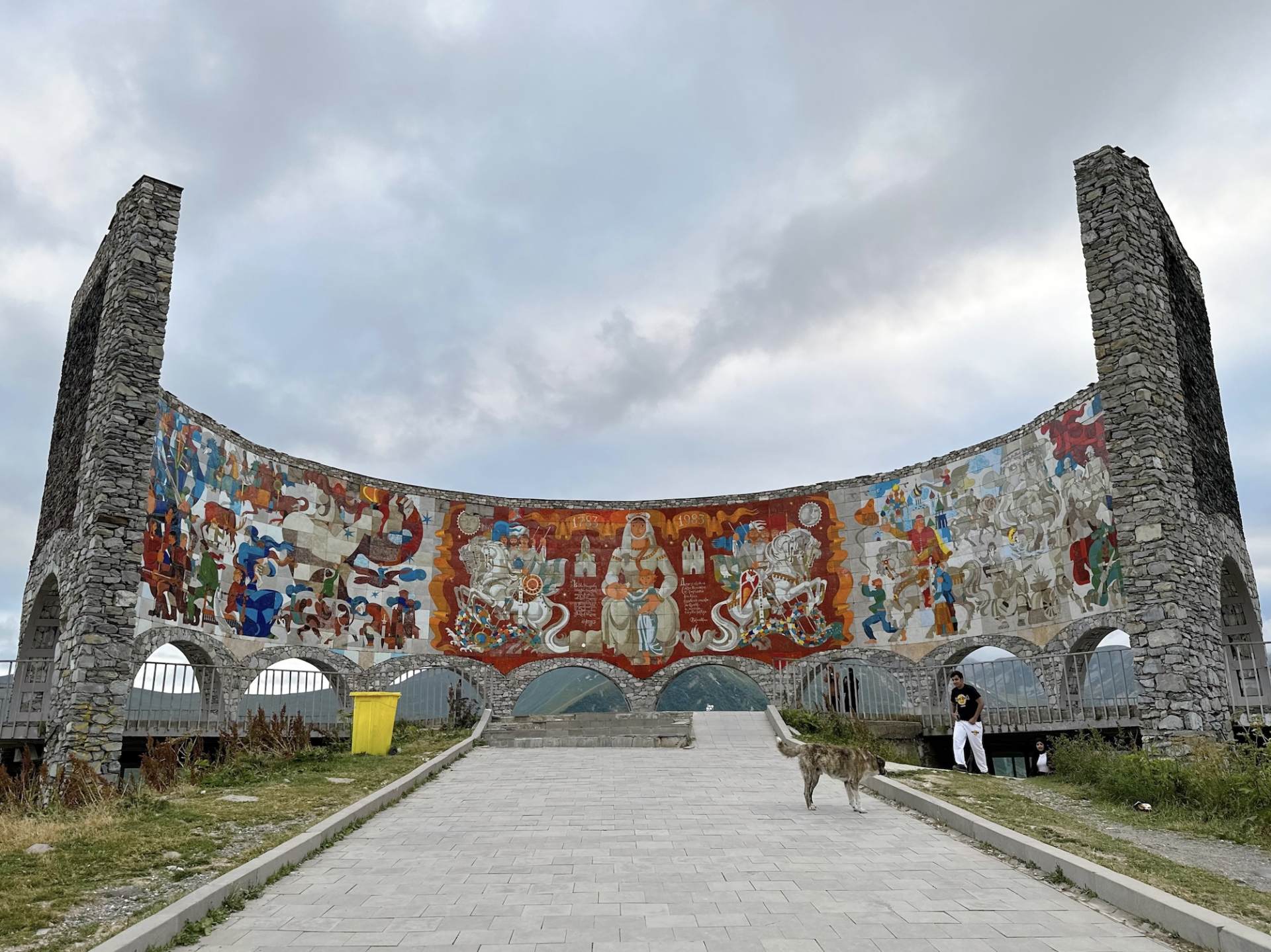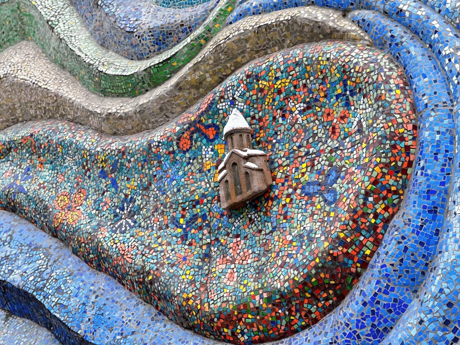 筆者もかつてはロシアのモスクワやウラジオストクを旅したことがありますが、そこでも地下鉄の駅や、町中の廃墟の壁で美しいモザイク画に目を惹かれたことを覚えています。 またジョージアではグダウリにある”ロシア・ジョージア友好記念碑”のモザイク画も有名で、大絶景のなかにたたずむ両国の歴史に関するモザイク画は、圧巻です。