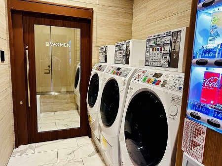 女性用はドアを開けた奥が洗濯室です。ずっと洗濯機の横にいるわけではないので、とても安心ですね。配慮や心遣いがあらゆるところにちりばめられているホテルです。