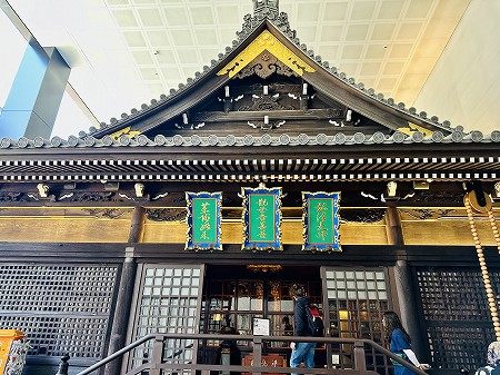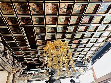 1808年の江戸期に建てられた、大阪市内では珍しい第二次世界大戦の戦果を免れた木造本堂には、堂内天井に描かれた100を超える色とりどりの花卉(かき)図や、漆や金箔・色絵で彩られた柱や彫刻など、豪華絢爛で荘厳な江戸美術が残っています。(三津寺HPより)