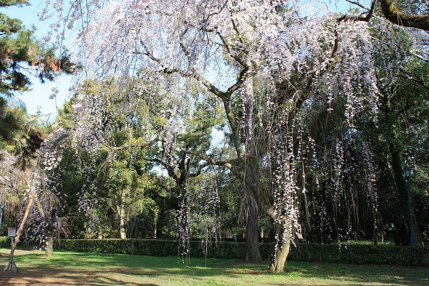 ここには、枝垂れ桜の大木が約30本あり、御苑でいちばん早く咲き始めます。