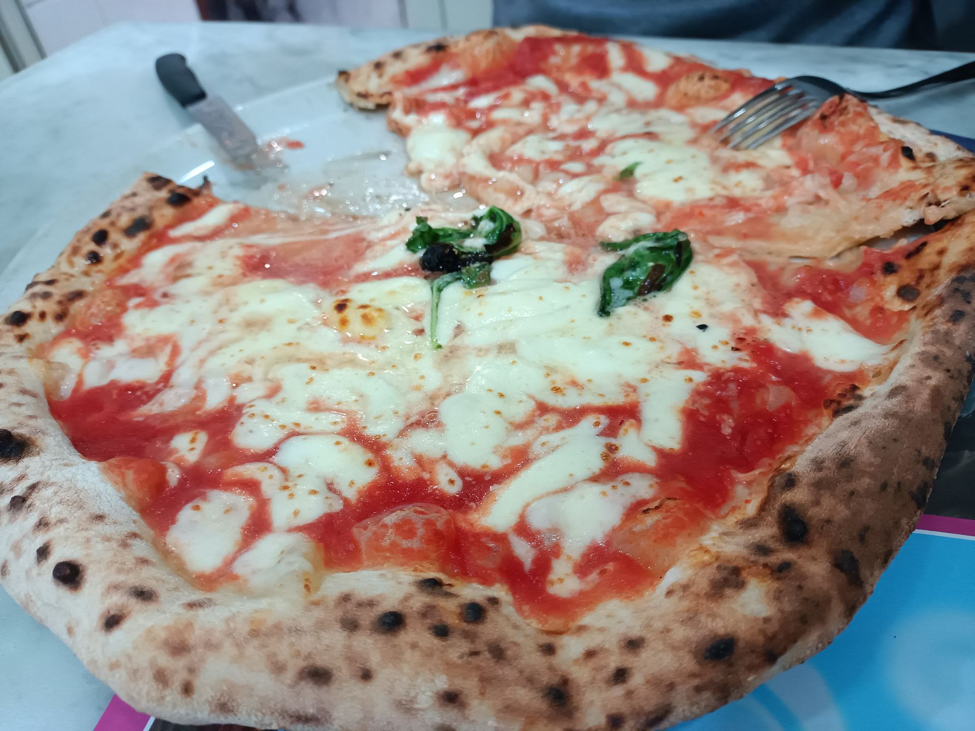 私たちはマルゲリータとマリナーラを分け分けしました。(ハーフハーフで注文も可能)