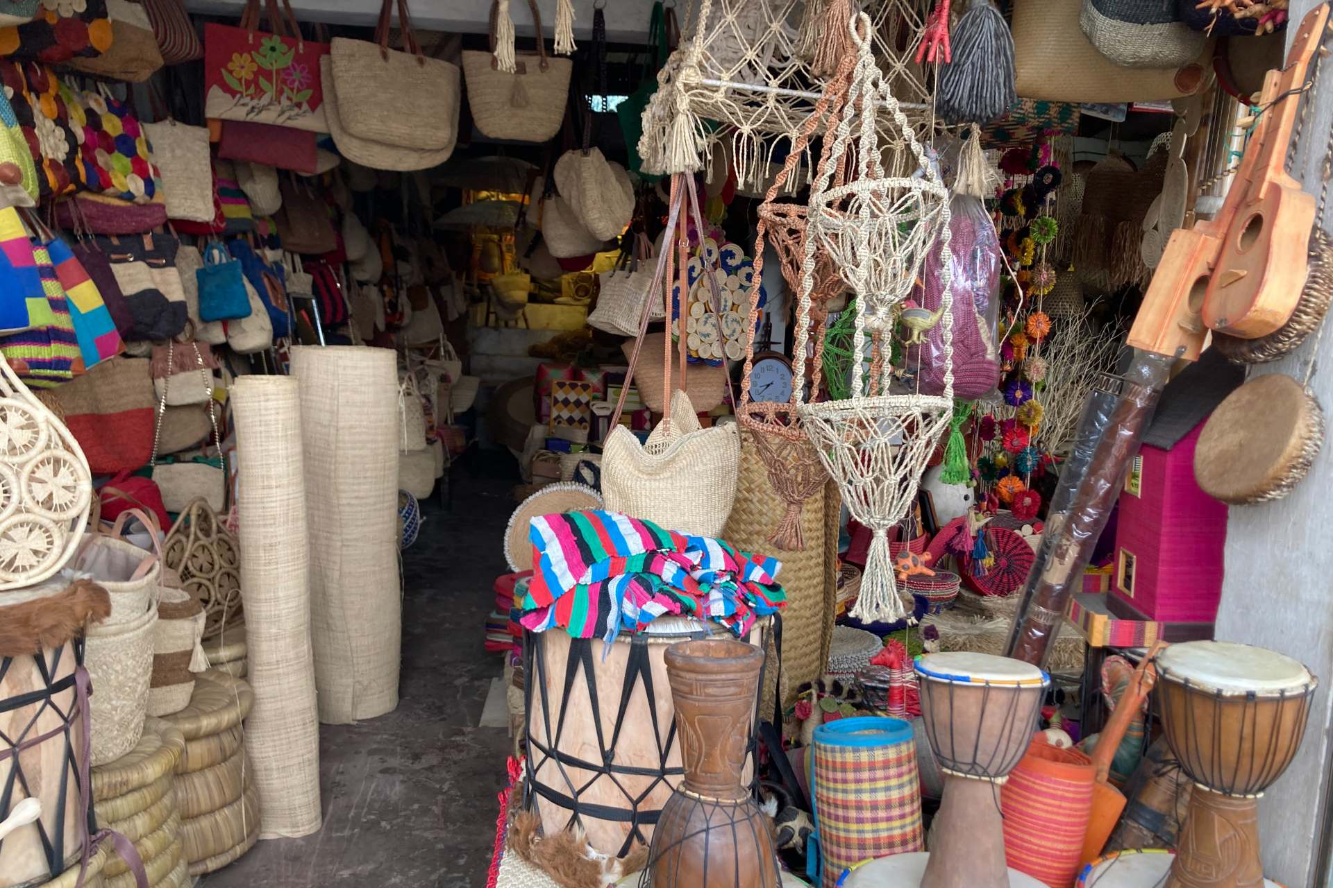 かご編みのバックや、虫が入った石など個性的なものも多くお土産を買うのに最適です!