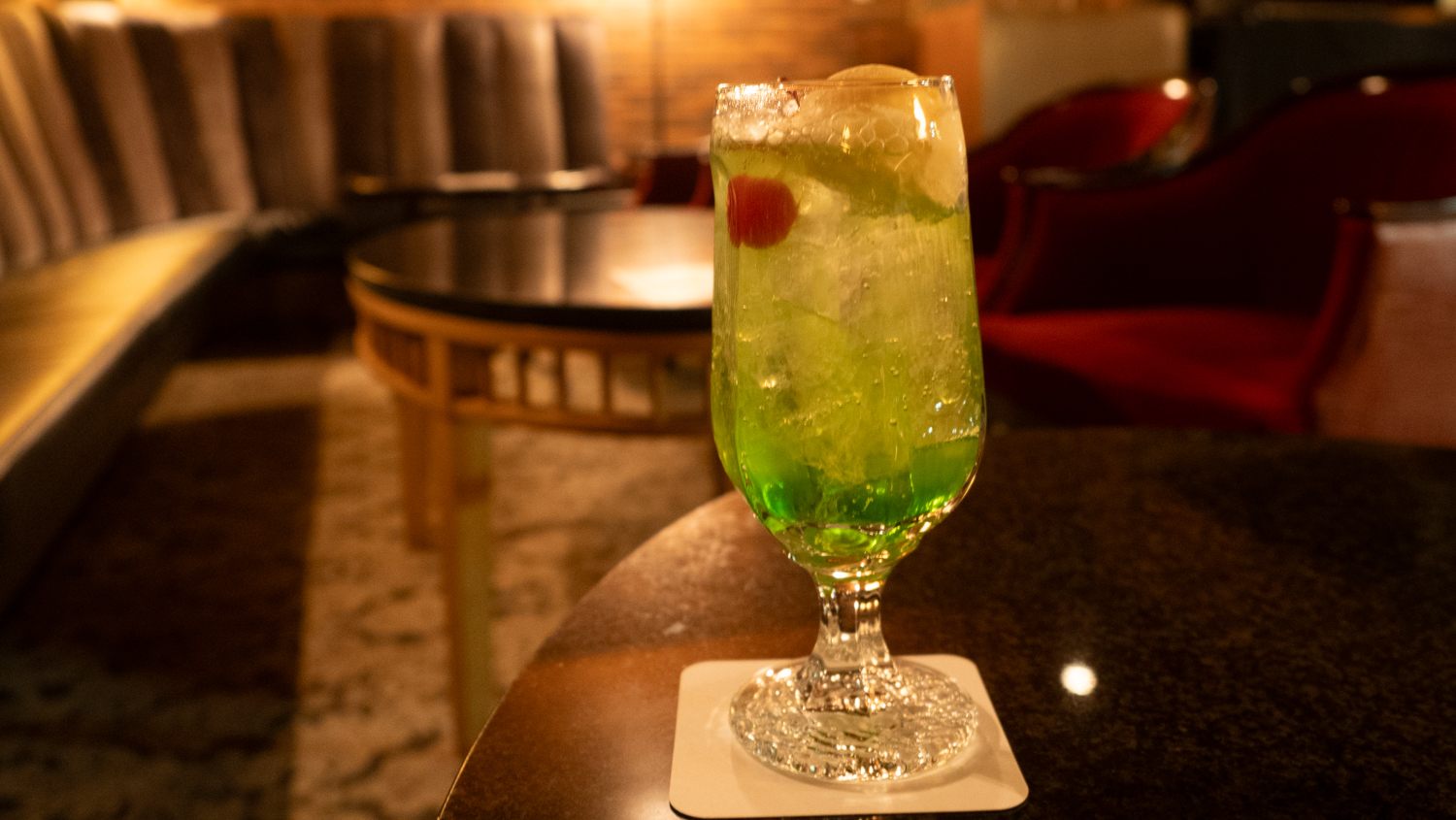 ぷかりと浮いたアイスクリームとチェリーが郷愁を誘う味ですが、メロンソーダはグラデーションも美しく、ホテルテイストの上品な甘さ。