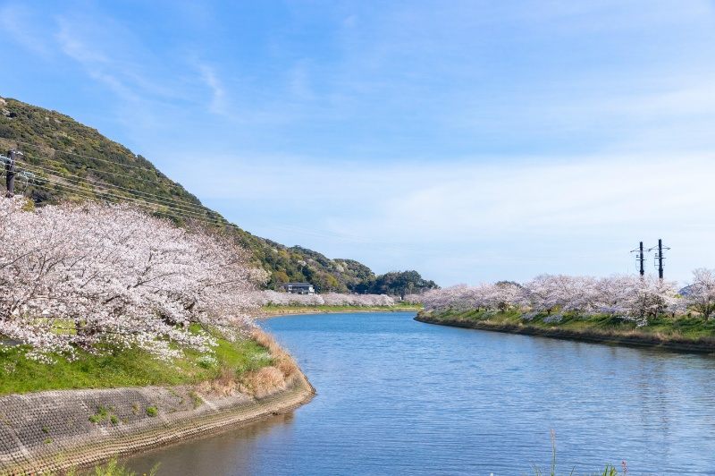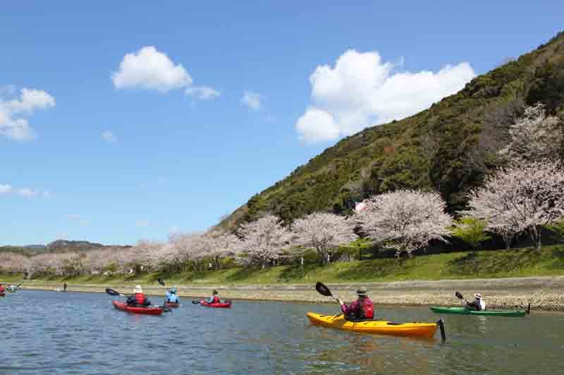 カヤックに乗って川面より桜並木を楽しむ「弓ヶ浜さくらツアー」を開催中!