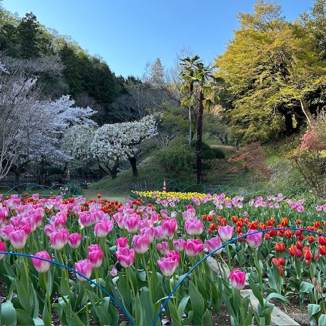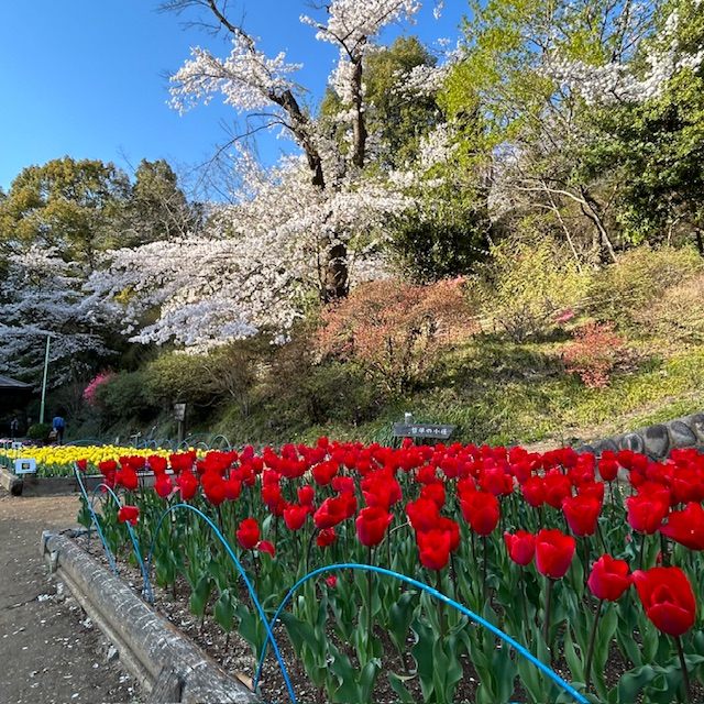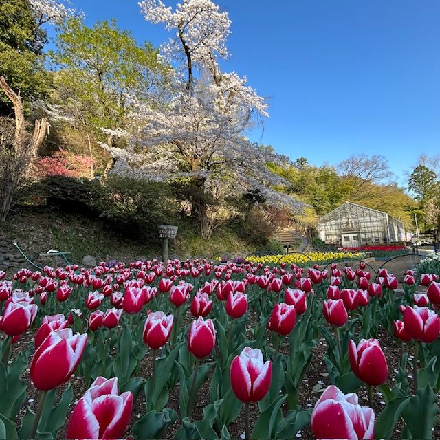 お疲れ様です。群馬特派員のKaRyoです。桐生市吾妻公園のチューリップが見頃を迎えています。4/10日現在、桜との競演が楽しめます。