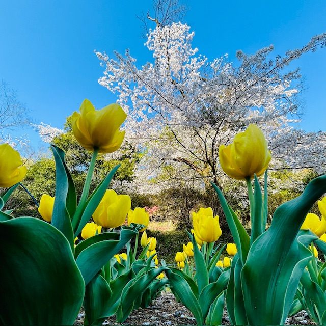 チューリップは、これからが満開を迎えるようです。桜は、今週末頃まででしょうか。