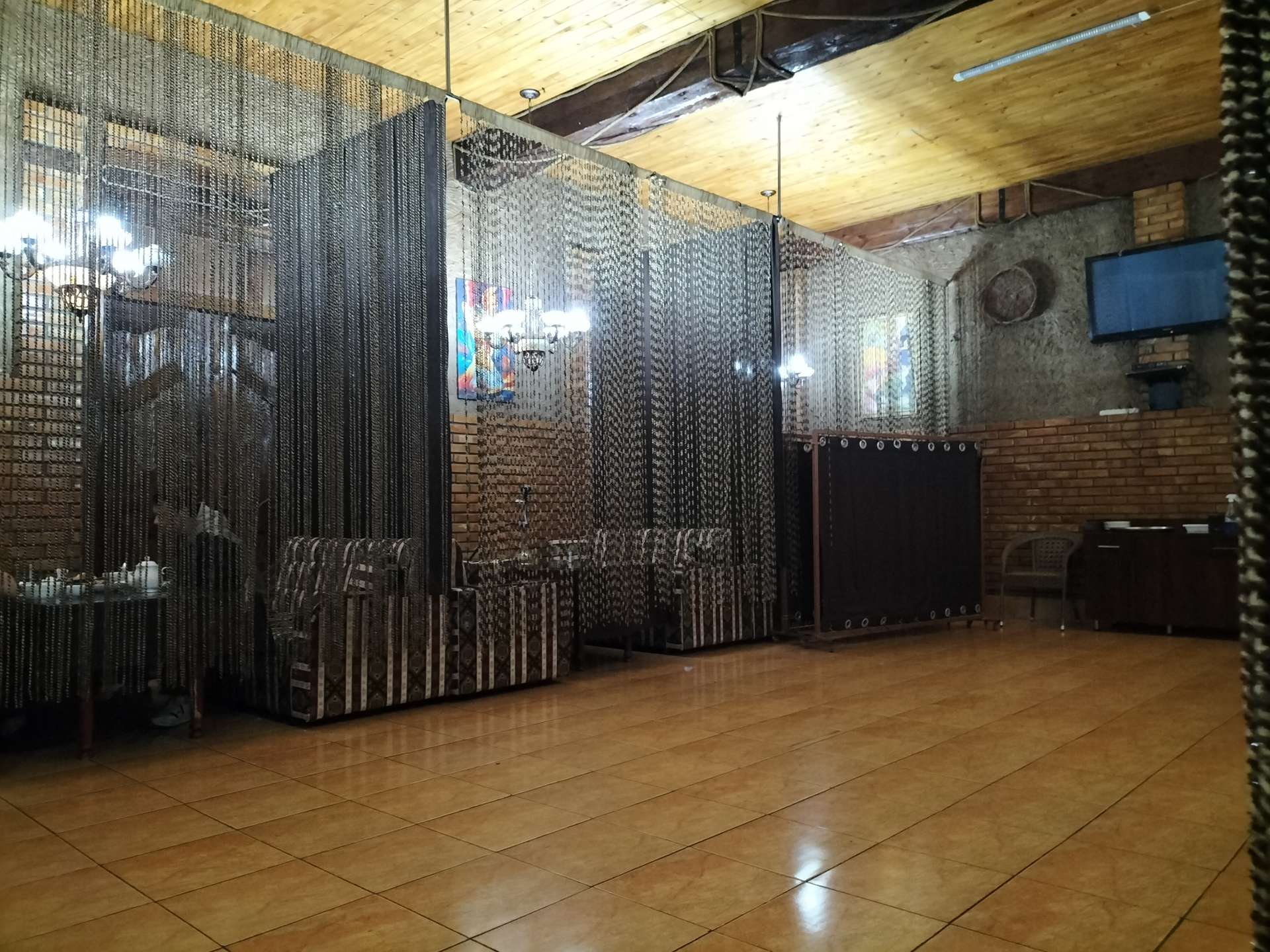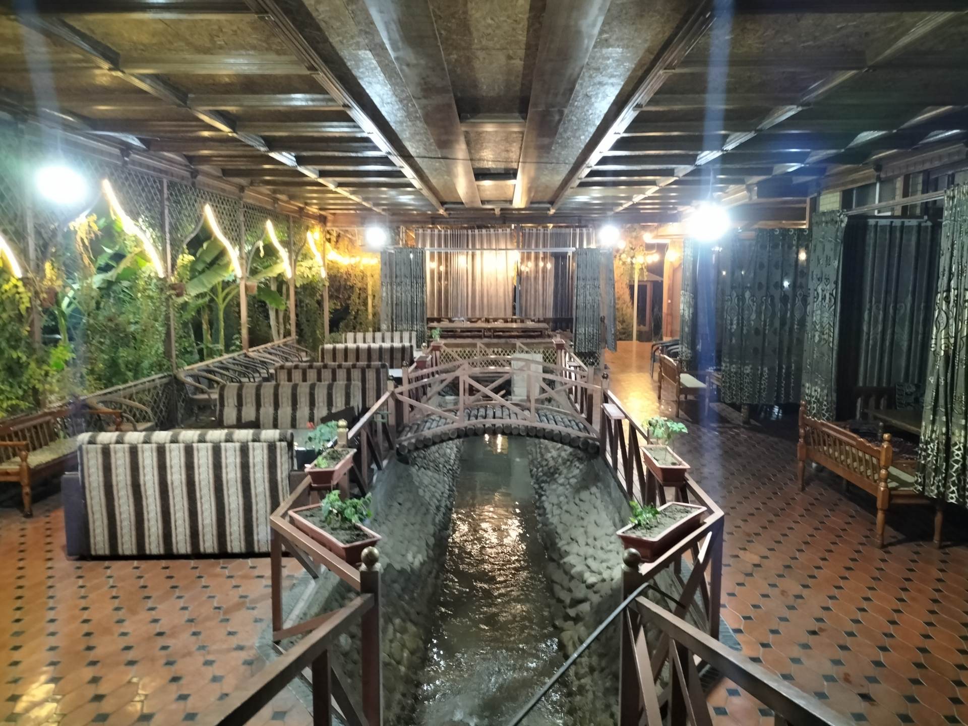 屋外の席が開放的である一方、屋内の席はプライバシーが確保されるよう視界を遮るカーテンや仕切りが置かれています。これはタジク料理店でよく見られる、一般的なセットアップです。